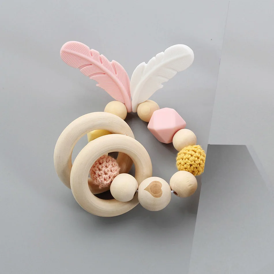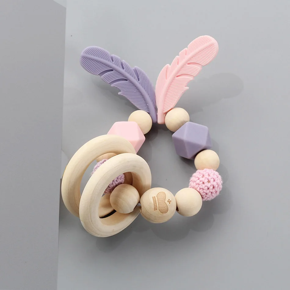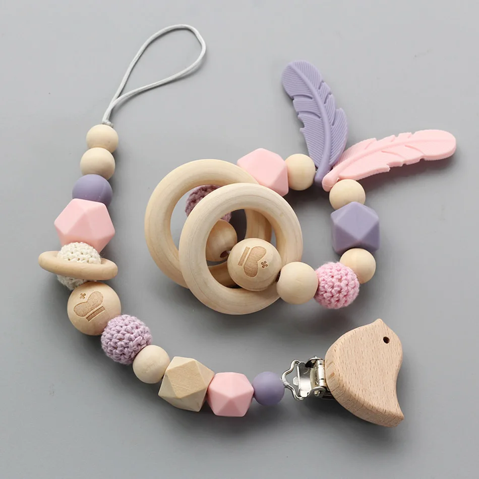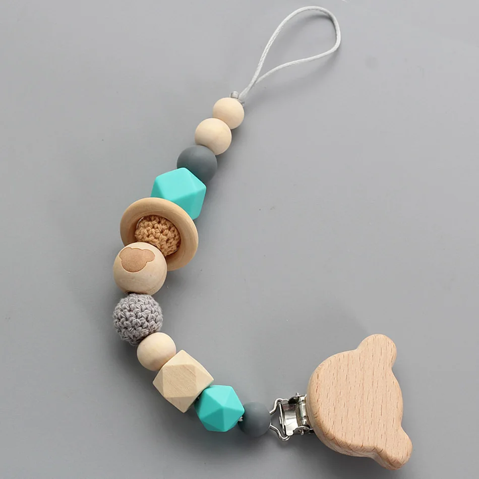 Держатель для соски и прорезывателя, с деревянной подставкой