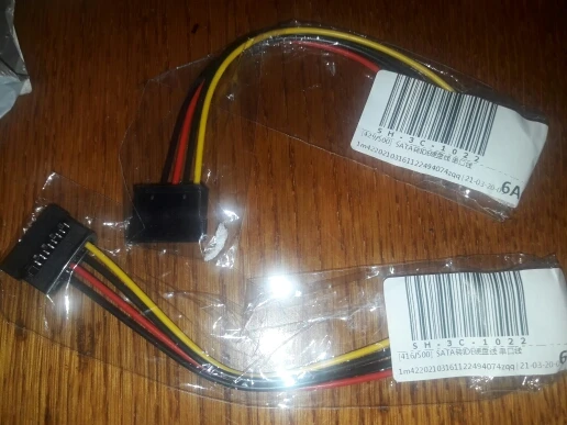 Хорошие адаптеры SATA-Molex. Кабель 18AWG, полная длина примерно 17см. Разъёмы и наконечники сделаны качественно, ничего не люфтит и не вываливается. Доставка и отправка быстрая, даже при бесплатной доставке посылки получилось объединить.