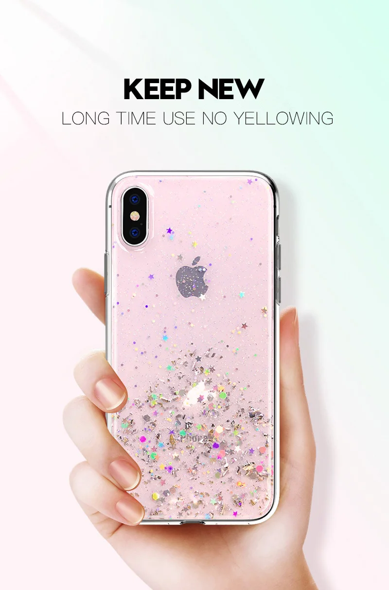 Роскошный чехол для телефона с градиентной блестящей звездой для iPhone 12 11 Pro Xs MAX XR X 6 6S 7 8 Plus 5 SE 2020, Прозрачный мягкий силиконовый эпоксидный чехол
