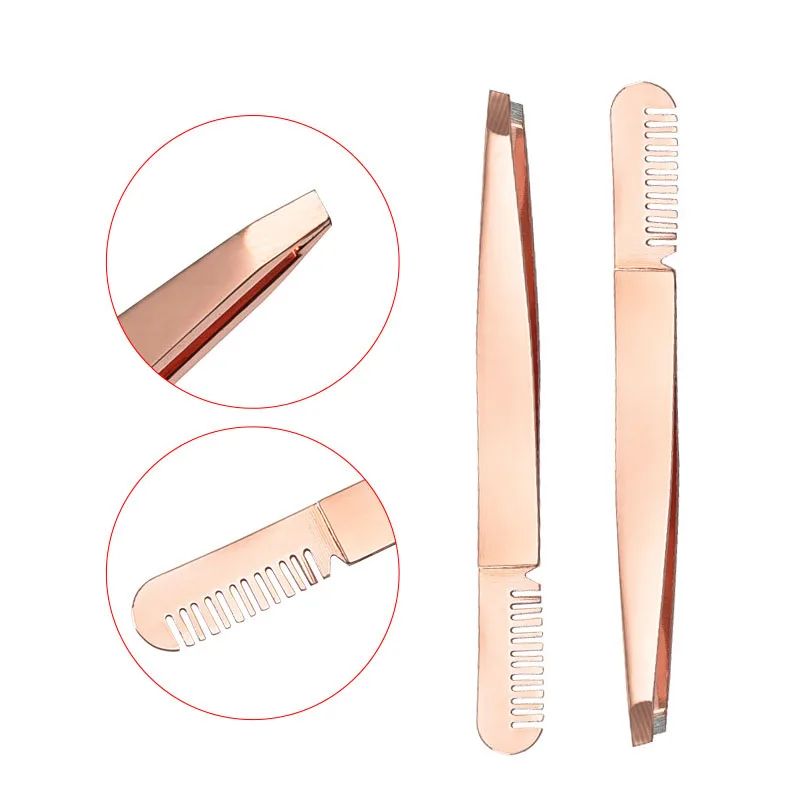 Пинцет для бровей с расческой для бровей, из нержавеющей стали