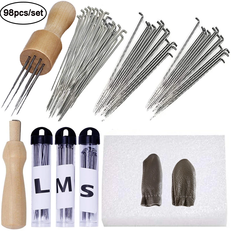 LMDZ 98 шт. набор инструментов для валяния игл шерстяной войлок набор иголок шерстяные иглы для валяния с деревянной ручкой пенопластовый коврик для начинающих