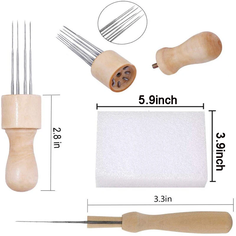 Особенности:1. Инструмент для деревянной ручки: более тыкаемая деревянная ручка может ускорить скорость обработки. Удобная и эргономичная ручка без скольжения. Очень легко установить и удалить иглу.2,8-иглы с деревянной ручкой инструмент: деревянной ручкой замечательно подходит для того, чтобы ускорить процесс иглы для валяния. Вы можете использовать на нем 1-8 игл, Он удобен и эргономичен в руке и не склонен к скольжению.3,90 иглы: наши иглы изготовлены из высококачественного металла, не легко ржавеют, долговечны, и количество достаточно, легко заменить, чтобы удовлетворить ваши долгосрочные потребности в использовании.4. Игольчатые войлочные прокладки: Игольчатые войлочные прокладки изготовлены из пеноматериала и имеют характеристики высокой плотности и сопротивления высокого давления, что может улучшить скорость и безопасность иглопробивного ощущения.5. Широко используется: Наш инструмент для валяния игл подходит для различных материалов: таких как шерсть, Нетканая ткань и пряжа, вы можете сделать различные ремесленные проекты, проекты из шерстяного войлока DIY, для начинающих и как войлок иглы, это очень хороший стартовый набор.98 шт./комплект посылка включает в себя:1 x коврик из пены с эффектом (5,9*3,9 дюймов)30x3,58 "иглы для валяния30x3,39 "иглы для валяния30x3,07 "иглы для валяния2 кожаных пальчиковых ботинка (Защитите пальцы от ударов)1 x деревянный игольчатый держатель1x8-иглы с деревянной ручкой Инструмент3 черных прозрачных бутылки4 шт./комплект посылка включает в себя:1 x коврик из пены с эффектом (5,9*3,9 дюймов)2 кожаных пальчиковых ботинка1 x деревянный игольчатый держатель