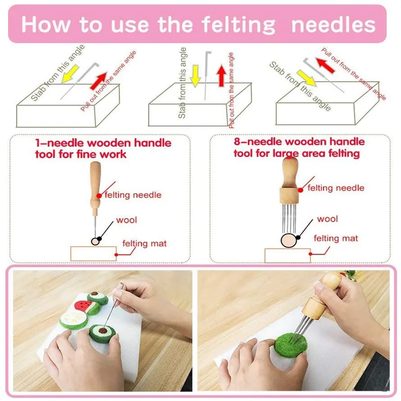 Размер S треугольник-мелкие детали-мелкая отделка-Особенности лица.Размер M треугольник-среднее-универсальное валяние. Используется для всех волокон и всех стилей нашего шерстяного войлока.Размер L треугольник-грубое-быстрое валяние-хорошее на внутреннем ядре