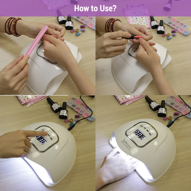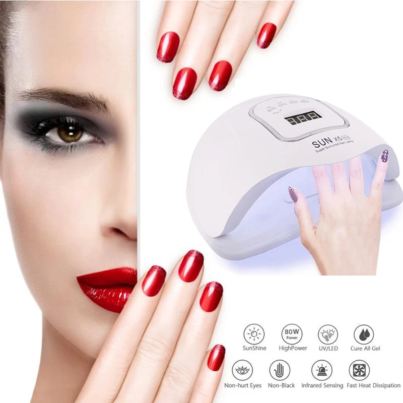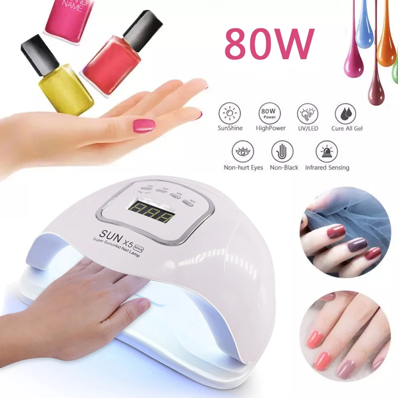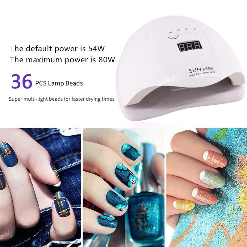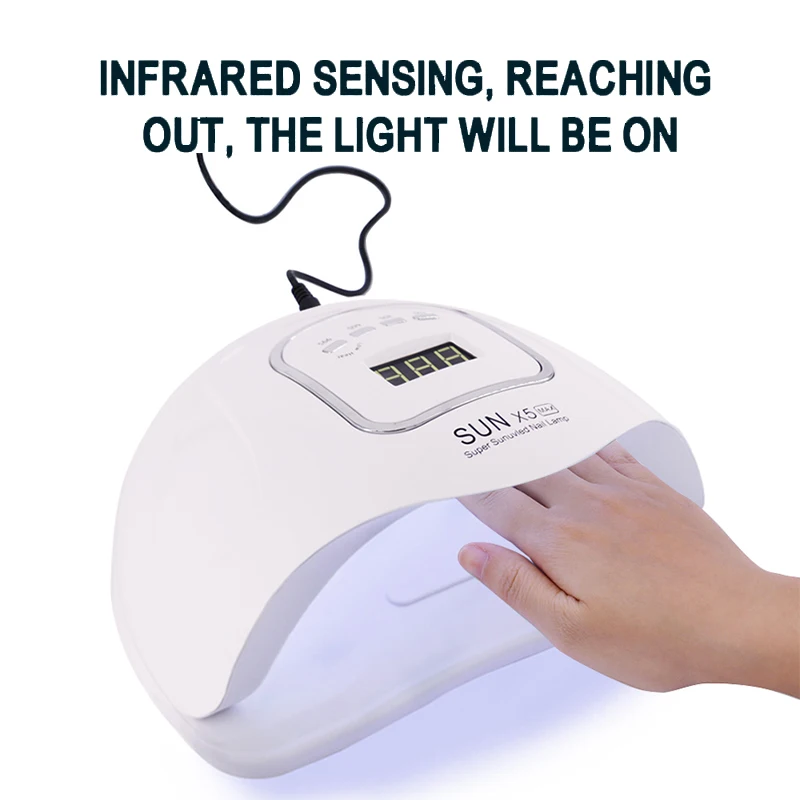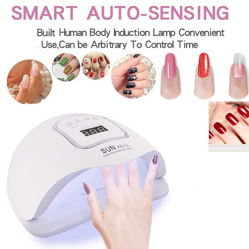Лампа УФ светодиодный LED для сушки ногтей, аппарат для маникюра с автоматическим датчиком, ЖК-дисплеем и гель-лаком