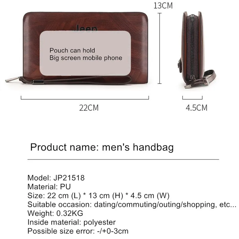Мужская сумка-клатч JEEP BULUO, Большая вместительная сумка-кошелек для телефона, высокое качество, многофункциональная сумка-кошелек с отделением для карт, посылка для карт