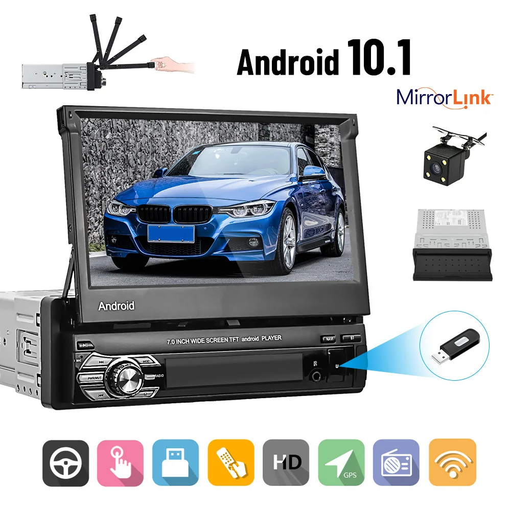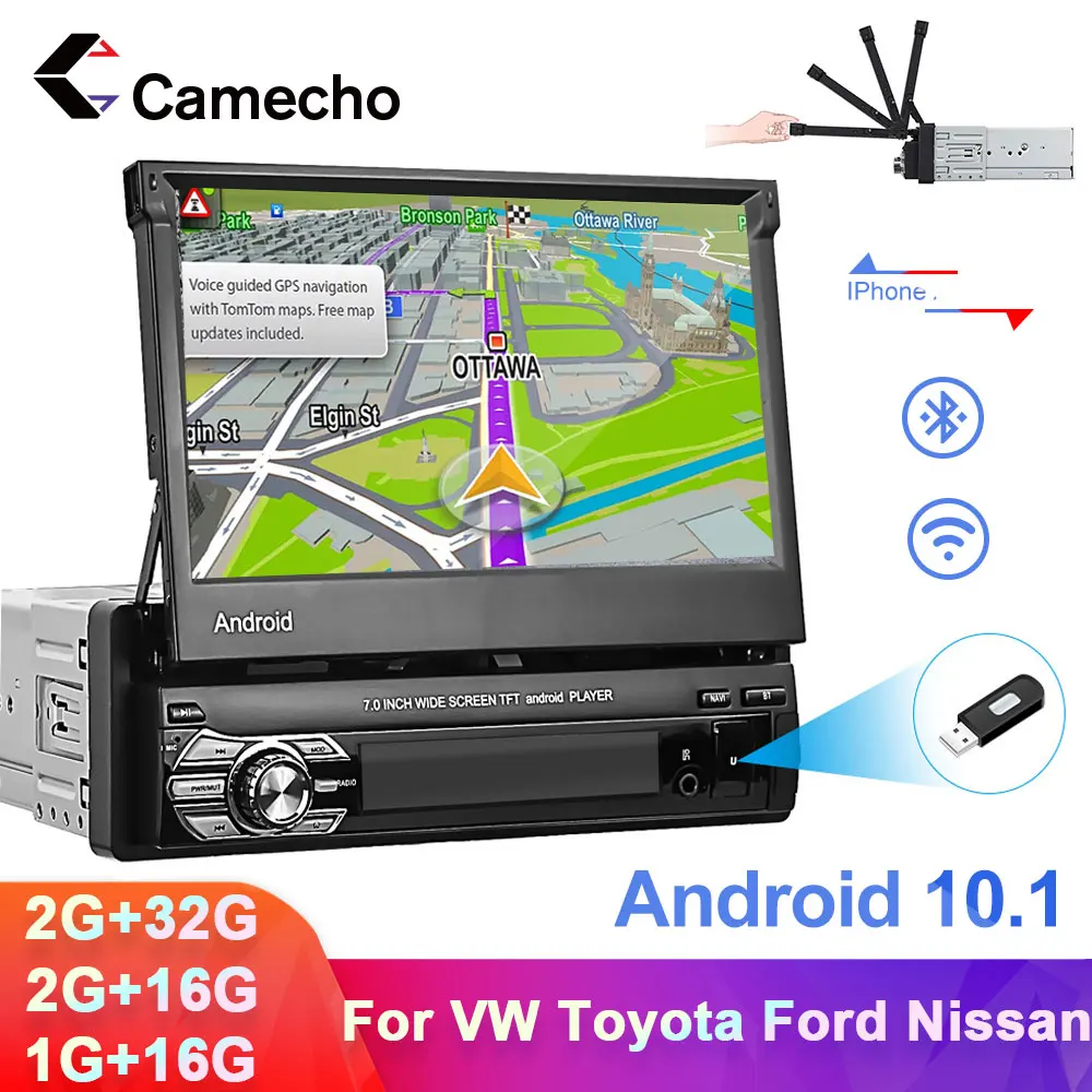 Автомобильное радио Camecho 1 Din 7 дюймов Android, Универсальный Автомобильный GPS, мультимедийный видеоплеер, выдвижной сенсорный экран 7 дюймов, USBFM, автомобильная стереосистема