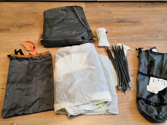 Вага відповідає заявленій! розміри трохи менші, реальна висота 100-104, ширина - максимум 160, довжина 210. Матеріали якісні. З нюансів - не правильним боком пришитий один фастекс, який регулює натягнутість зовнішнього тенту. Доведеться використовувати його в перекрученому вигляді, щоб не розрізати стропу якою він пришитий, бо інакше він не фіксує потрібний натяг. Не сподобалось також, що поперечна дуга досить коротка - 105 см, що при заявленій ширині 170, а реальній 160, очевидно замало, вона не робить бічні стінки повністю вертикальними, як наприклад в NH Mongar 2. Це мій перший ультралайт намет з силіконки, порівняти немає з чим, але тент досить плотний, якість пошиття хороша, фурнітура хоча й ноунейм але працює добре. Порадували Y подібні кілки в комплекті та алюмінієва фурнітура. Вибирав з критеріїв- 3-місний, вага до 2,5 кг, ціна до 150 у.о. з доставкою, та трьох сезонність, тобто стінки внутрішнього намету не повністю з сітки. За 100 баксів хороший намет!