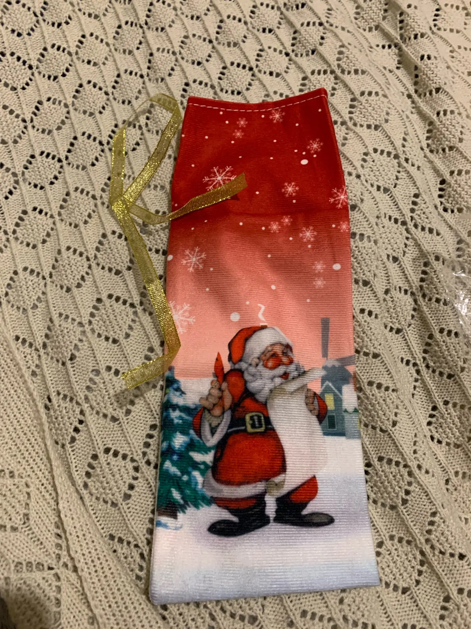 Особенности:1. Изысканные узоры деда мороза, лося и снеговика добавляют рождественскую атмосферу.2. Флизелин; Новогодние украшения; Многоразовый набор бутылочек3. Горлышко бутылки имеет отдельную стяжную веревку для фиксации, что просто и удобно.4. Можно использовать как мешок для конфет или подарочный пакет.5. Подходит для рождественских вечеринок, домашвечерние чных украшений, праздничных украшений, настольных украшений, ресторанов, отелей и многого другого.