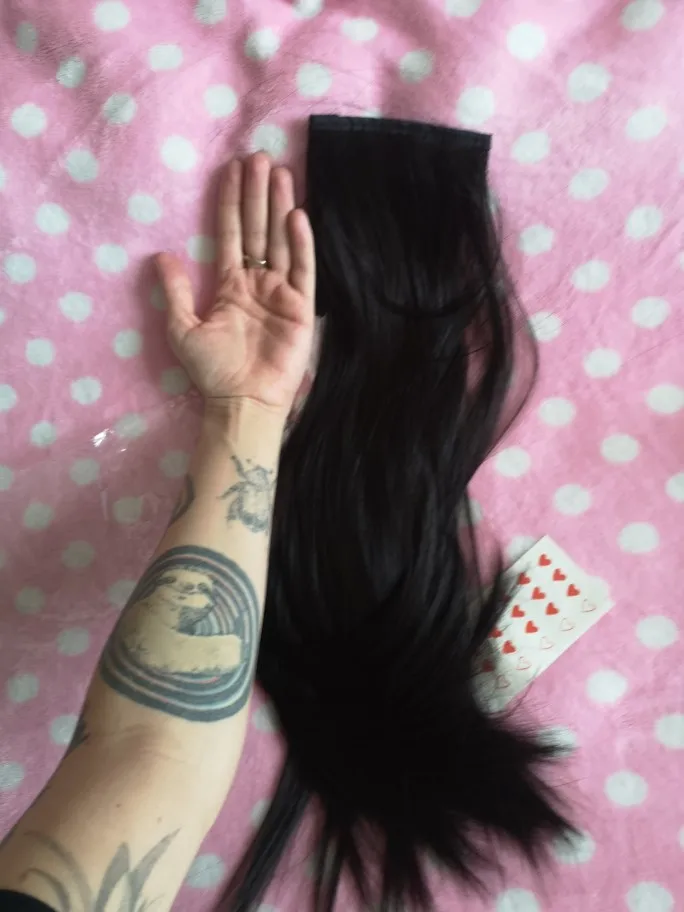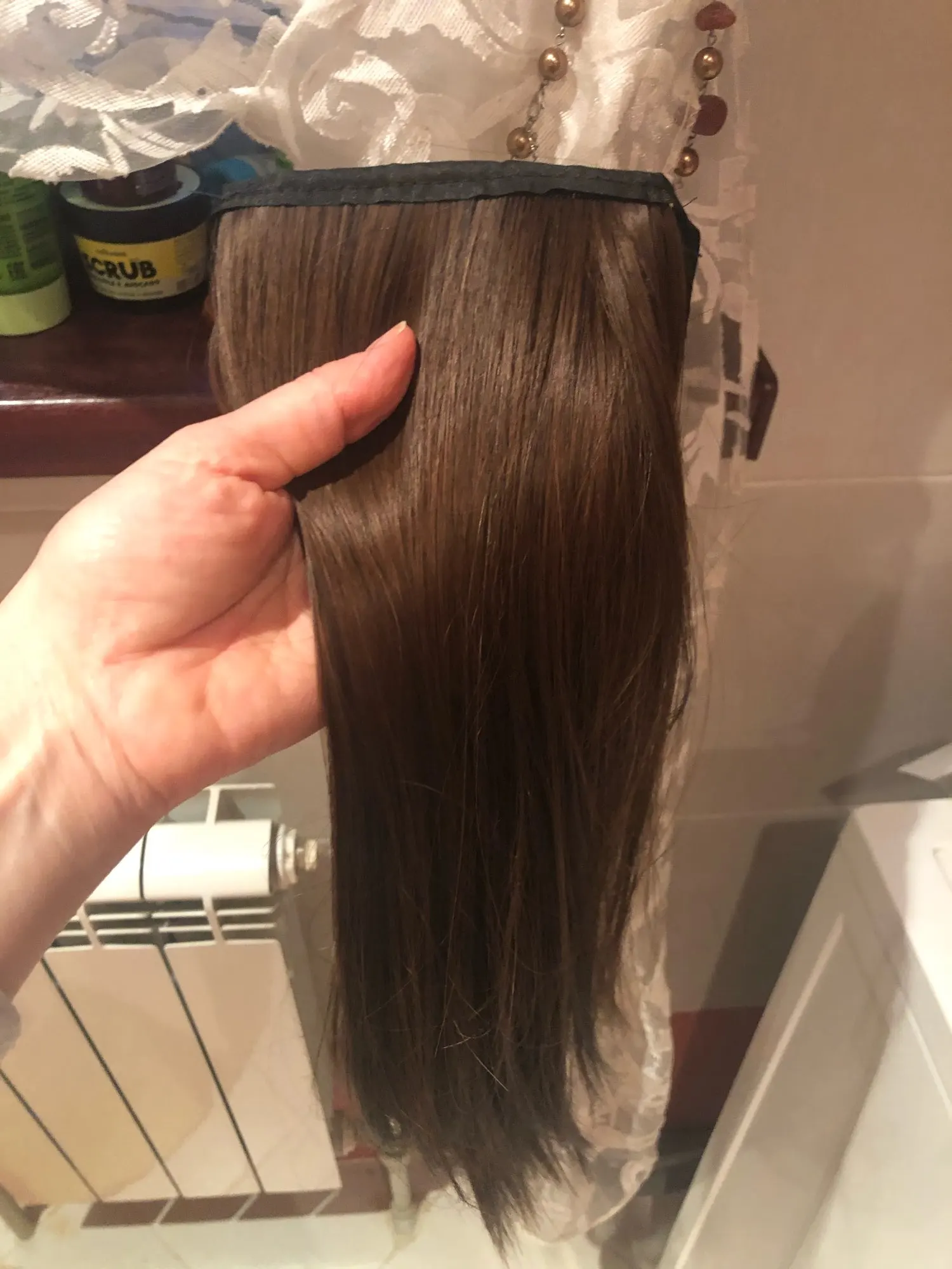 Очень быстро заказ пришёл, очень довольна. Вот только проблема такая, что высокий хвост не сделаешь, к сожалению. Просвечивает заколки видно. Только низкий нормально. Ну и блестят сильно, видно что накладной
