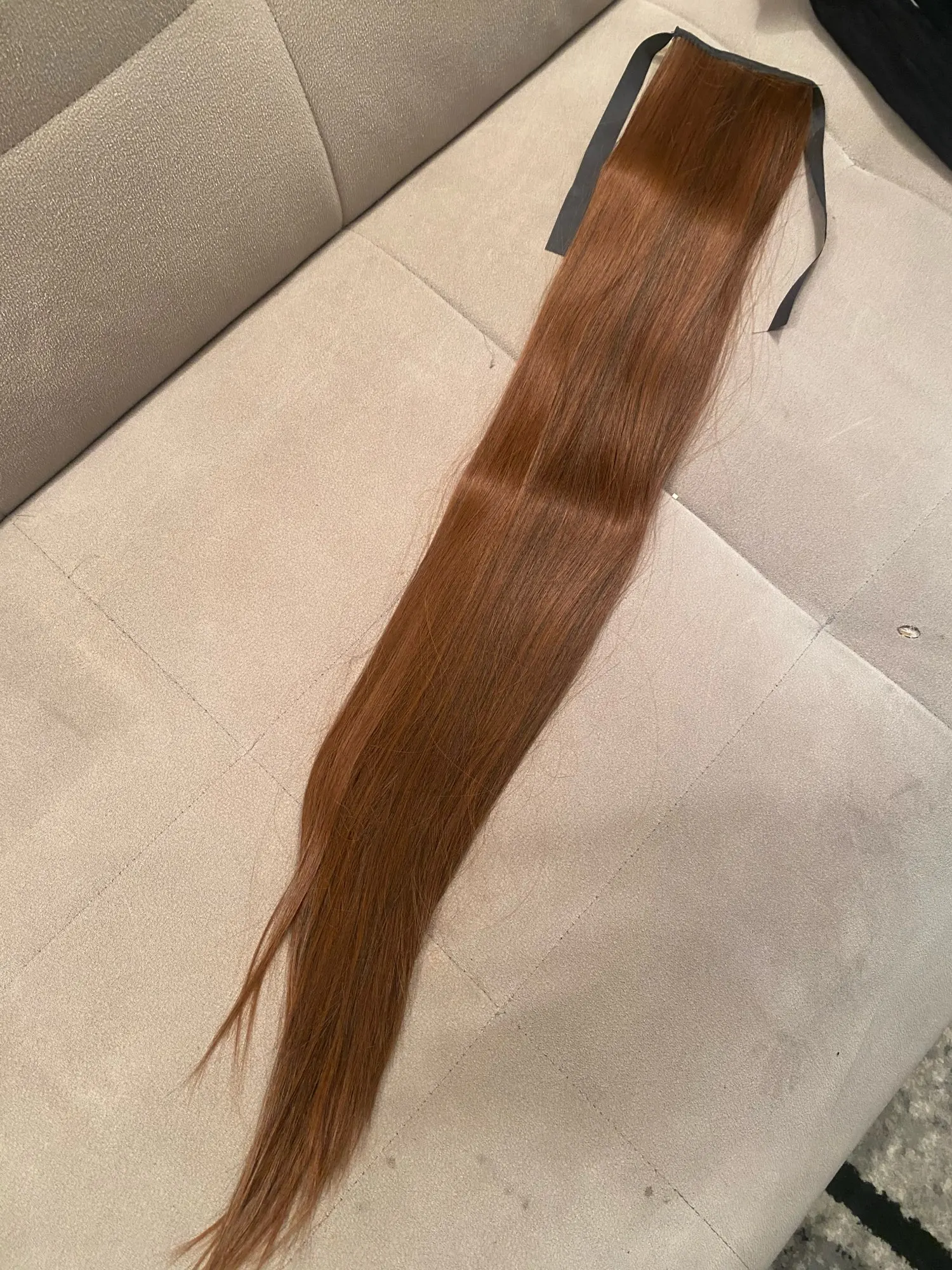 Очень милый хвост, как подлинный. Простой дизайн волос! Цвет темно-каштановый до бронзы, почти такой как мой, но ufarbuję, идеально подходит для меня. Разница в nieznaczna. Тяжелая, приятно чувствовать себя с ней, когда она закреплена ниже. Я очень доволен! Доставка 10 дней заказа. Супер хвост! Спасибо продавцам!-Я получил 60 см и рад.