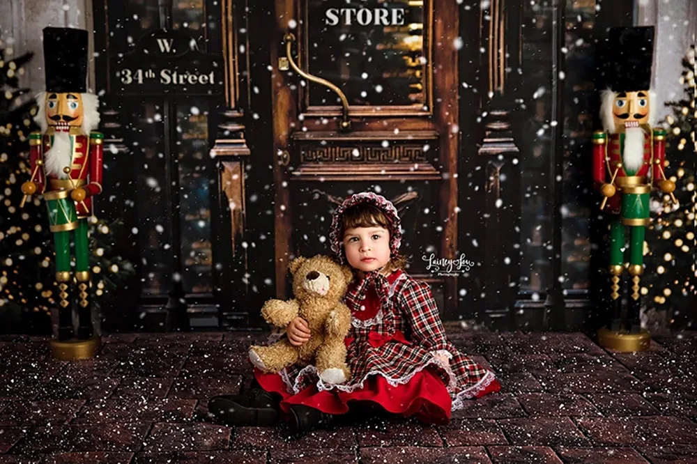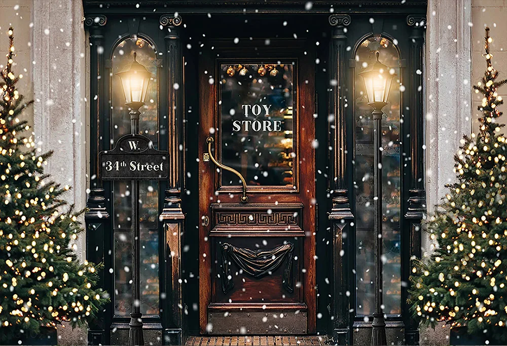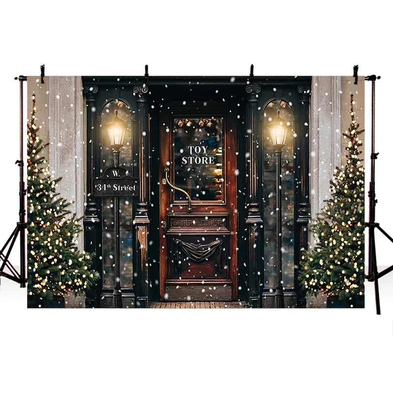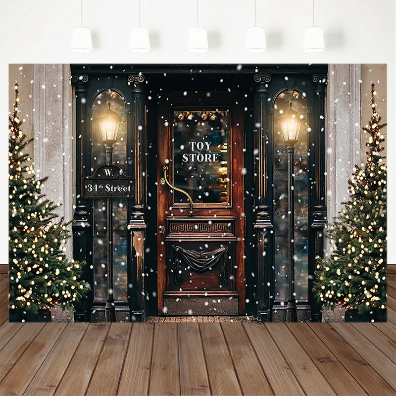 Зимние рождественские снежные фоны для фотографии, винтажные двери,...
