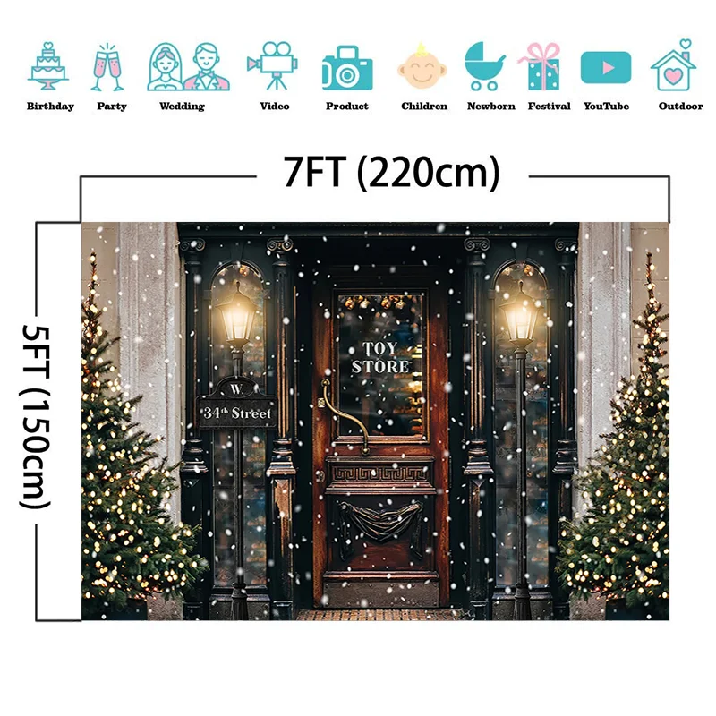 Рождественский фон для фотосъемки X-mas Tree Sled Snowfield фон для...