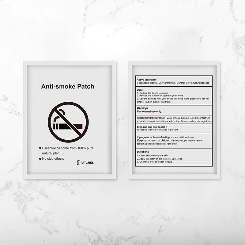 Применение методы: 1. Очистите кожу, затем высушите кожу 2. Снимите защитную мембрану от адгезии 3. Вставьте пластырь на очищенные верхние части тела, такие как рука, бедра, лопатка 4. Прикрепите пластыри против дыма каждое раннее утро после пробуждения 5. Используйте в дневное время, лучше удалите его перед сном 6. Замените новый через 4 часа