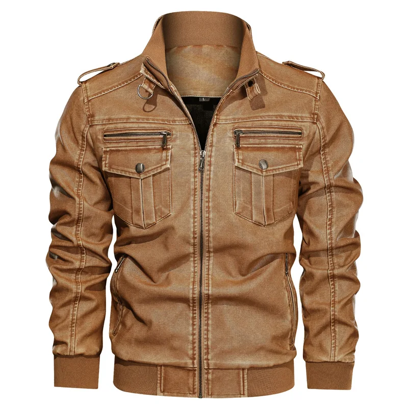 Мужская кожаная куртка-карго, мотоциклетная куртка цвета хаки, курт...