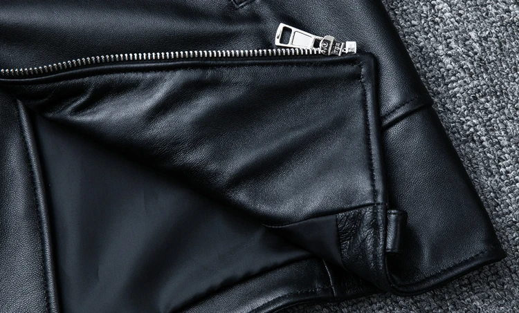 Мужская куртка из натуральной овечьей кожи, черная, мягкая, мотоцик...