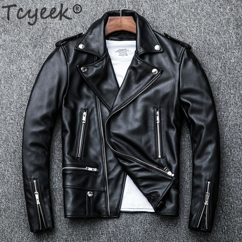 Мужское байкерское пальто Tcyeek, куртка из натуральной овчины, уличная одежда, осень-зима 100%