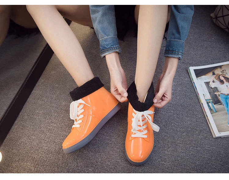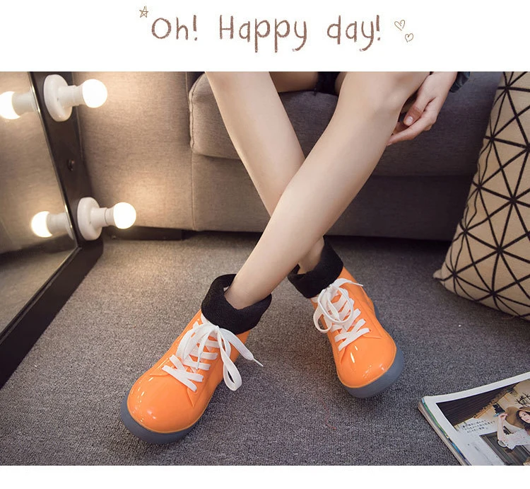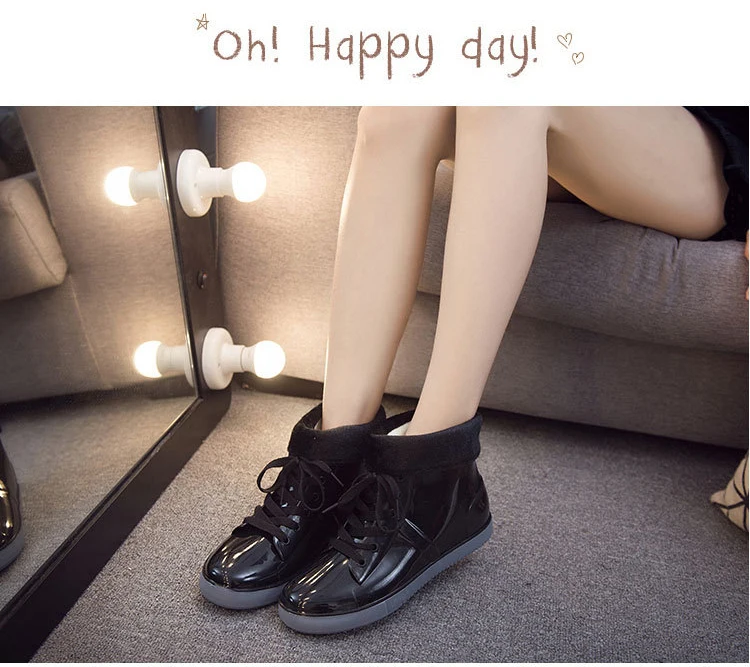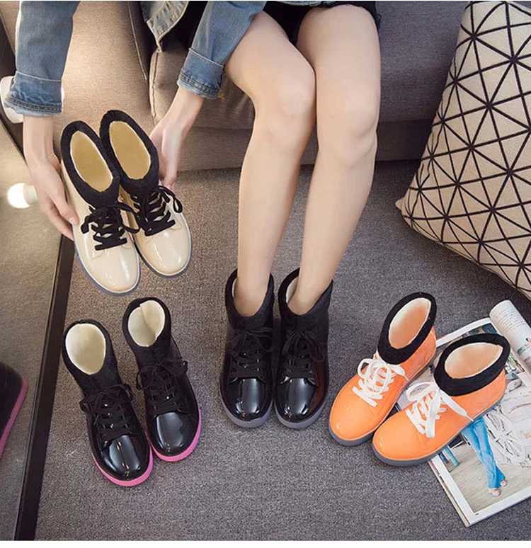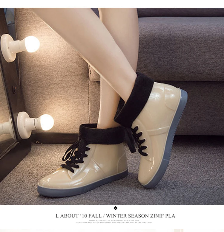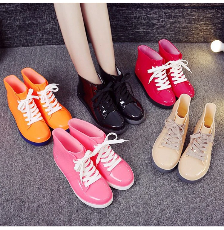 Модные женские резиновые сапоги на шнуровке Нескользящие резиновые ...