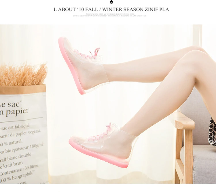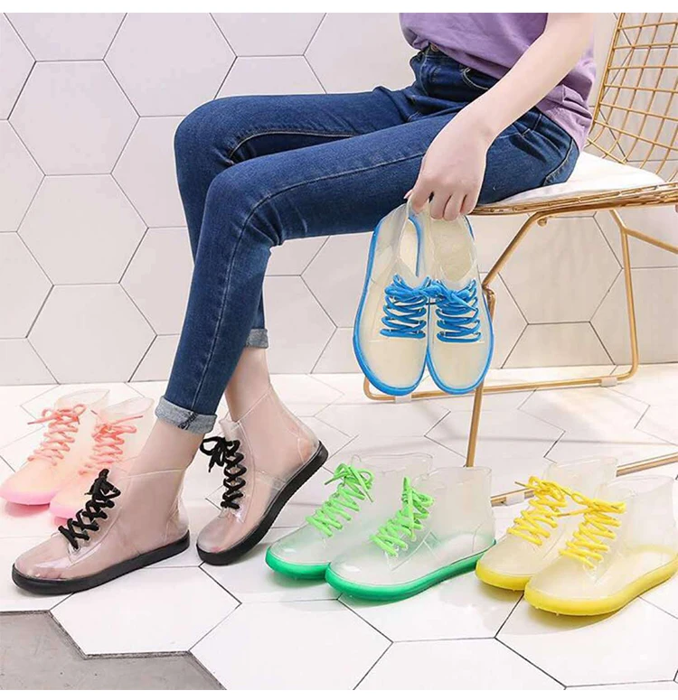Прозрачные дождевые ботинки водонепроницаемая обувь, модные желейны...