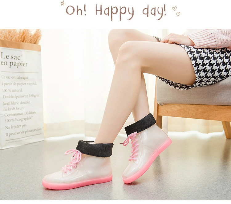 Модные резиновые сапоги; Прозрачные теплые резиновые сапоги для взрослых; Резиновая обувь; Водонепроницаемая обувь; Нескользящие женские короткие сапоги для студентов