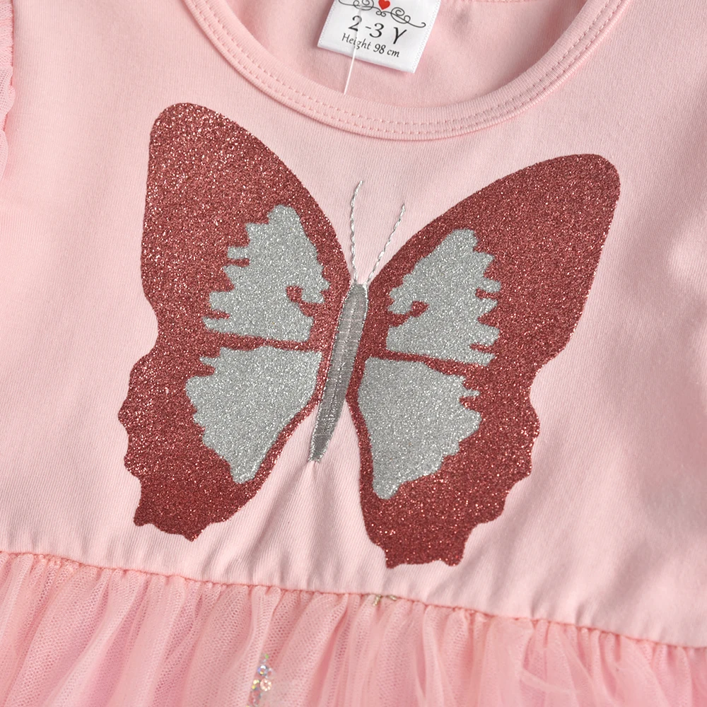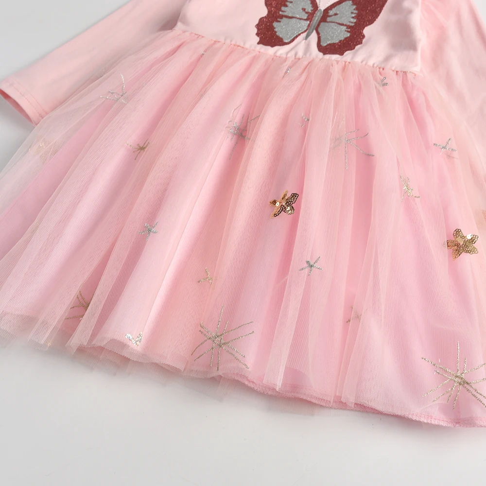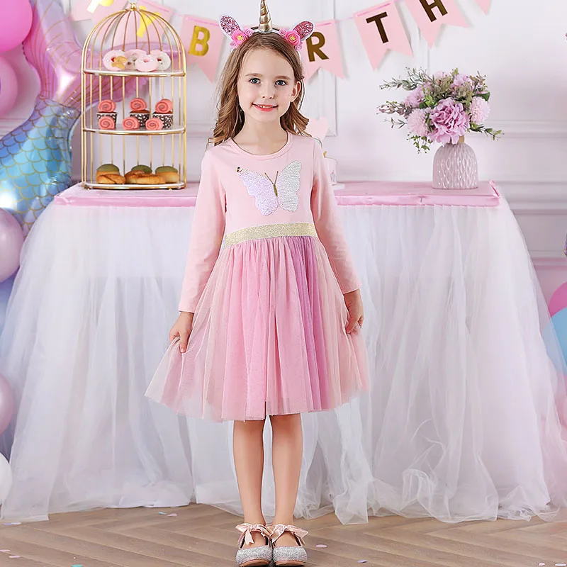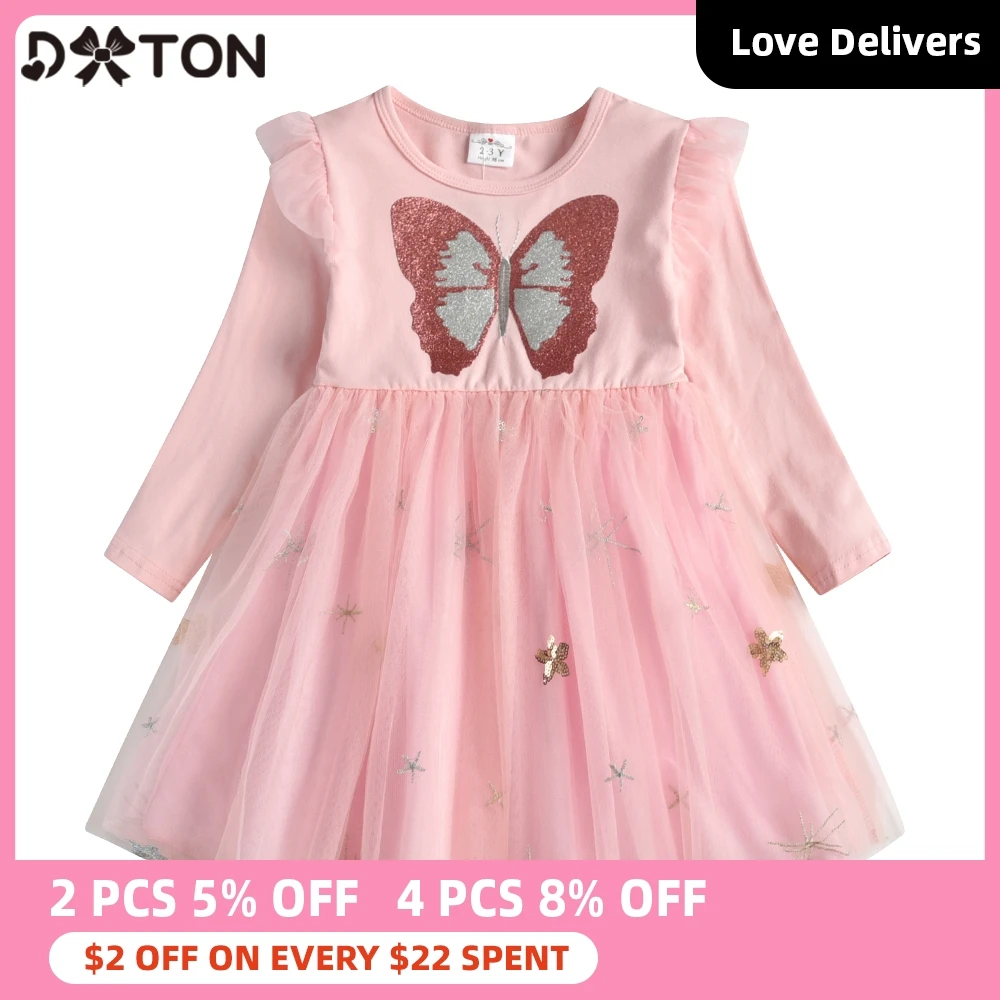 Платье принцессы DXTON с летящим рукавом для девочек, детские платья с бабочками, Детские праздвечерние чные костюмы из тюля, осенне-зимнее платье для девочек