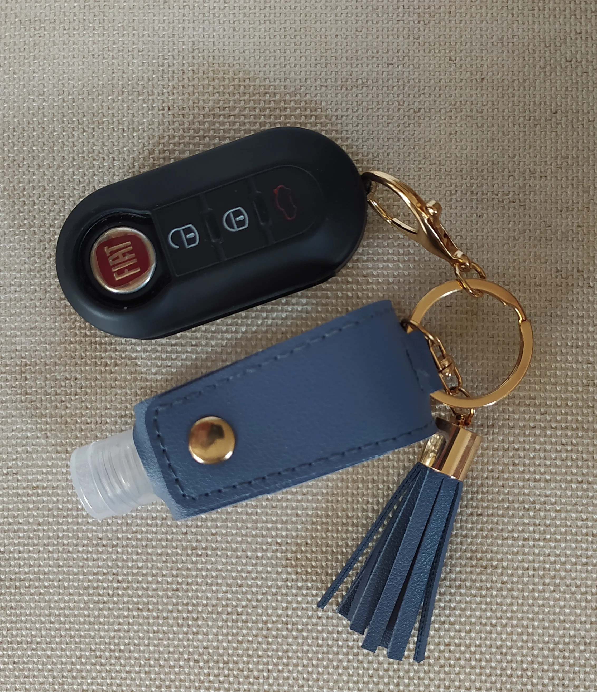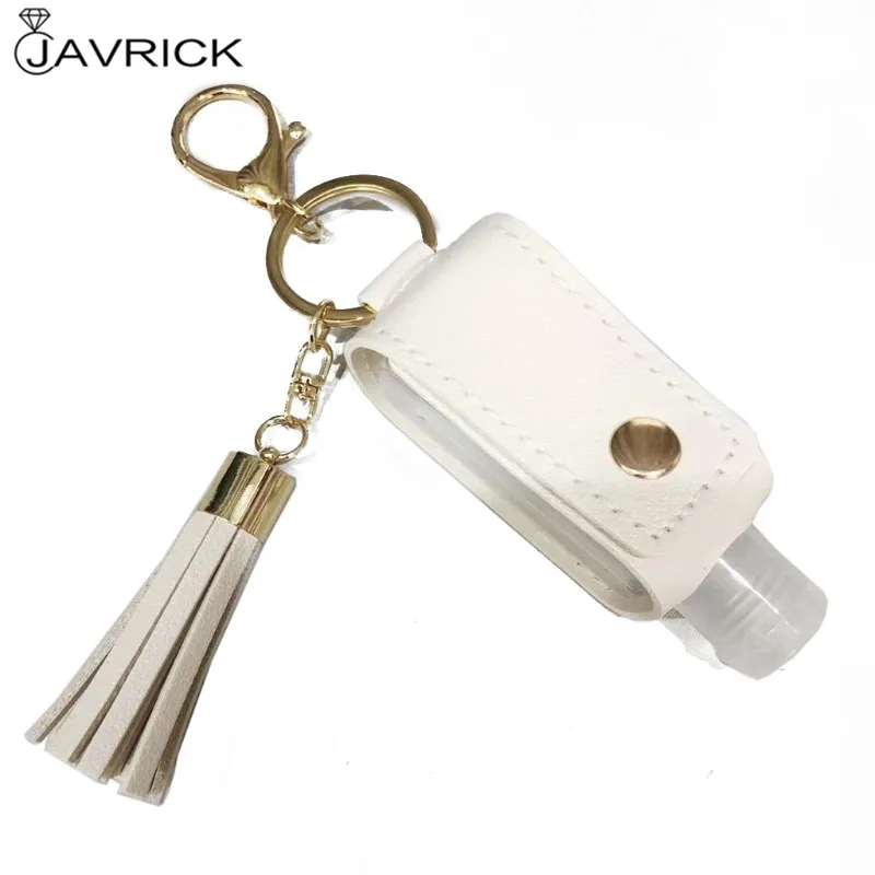 Портативная 30 мл пустая герметичная пластиковая дорожная бутылка для дезинфицирующего средства для рук с кисточками, кожаный держатель для ключей
