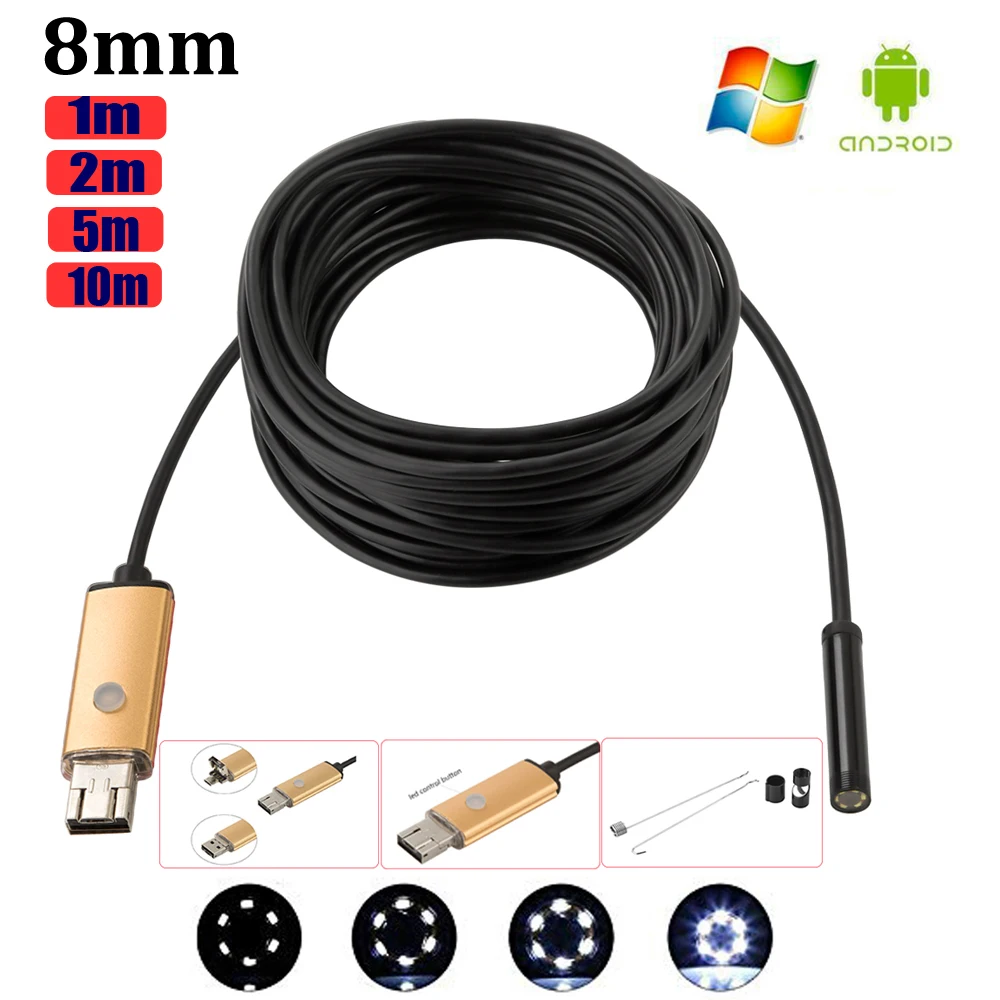 Android USB эндоскоп 2 в 1 2MP 1 м 2 м 10 м HD камера 8 мм IP67 Walterproof Schlange USB kamera HD 720P Android Мобильный USB эндоскоп