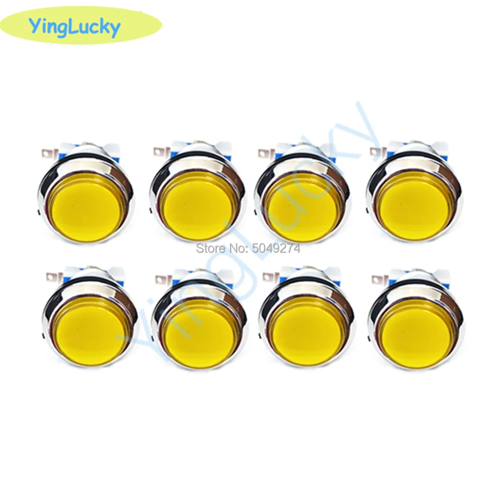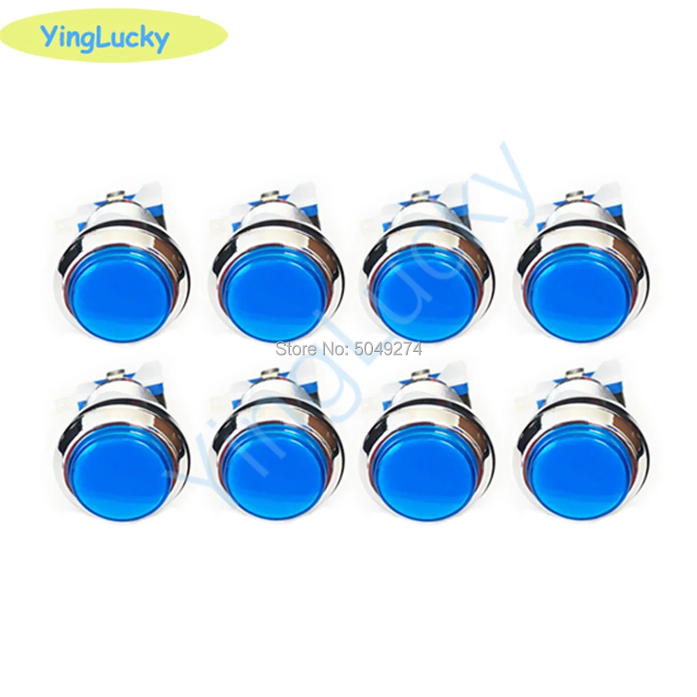 Бесплатная доставка, 8 шт., набор светодиодных аркадных кнопок, люминесцентная Серебряная Кнопка 12 в 33 мм для аркадных игр jamma pandora, корпус коробки