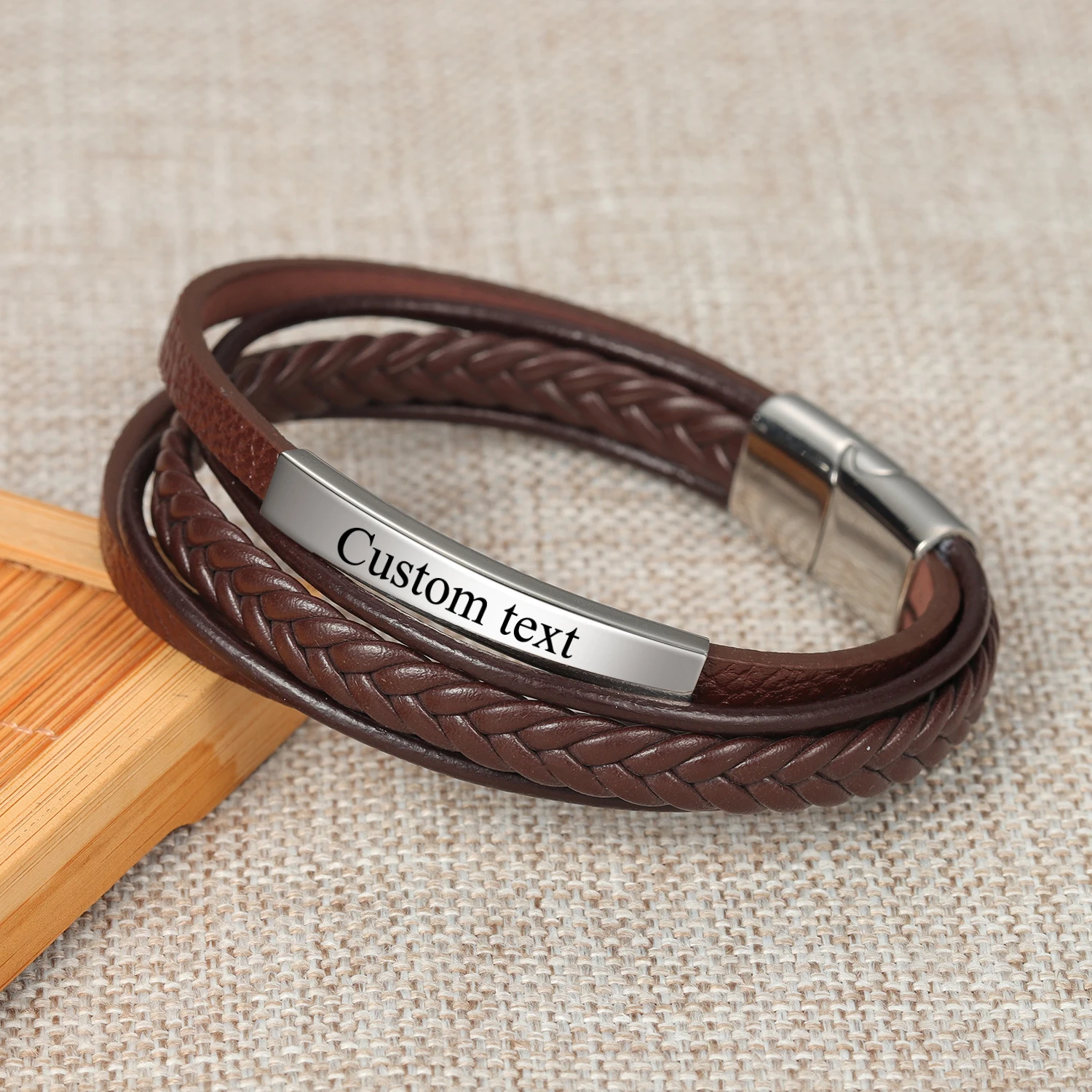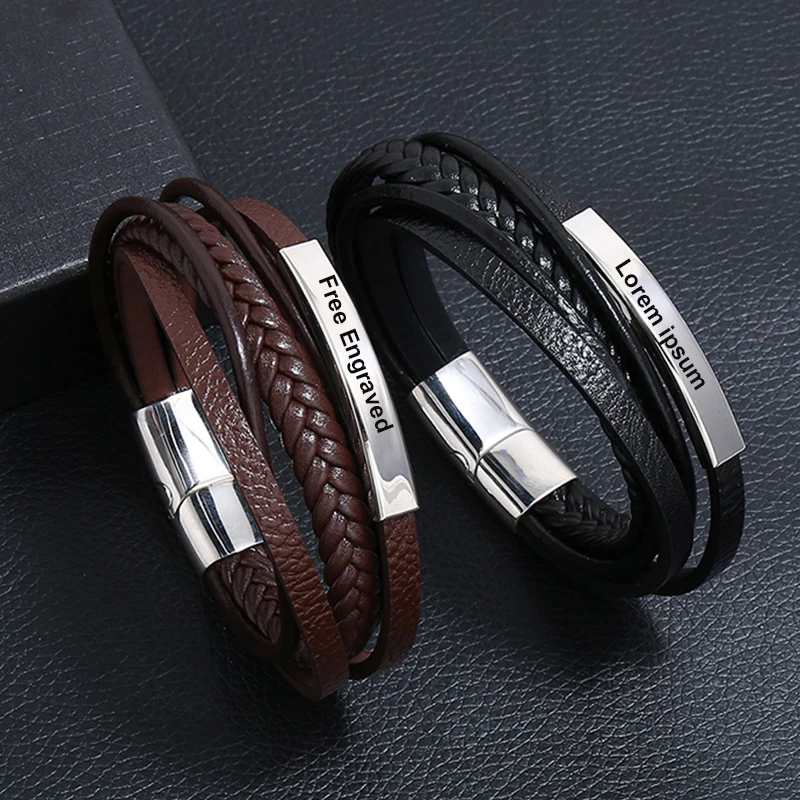 Мужские кожаные браслеты с цитатами на заказ, глянцевые Многослойные плетеные браслеты из нержавеющей стали, персонализированные Муж папа, Рождество