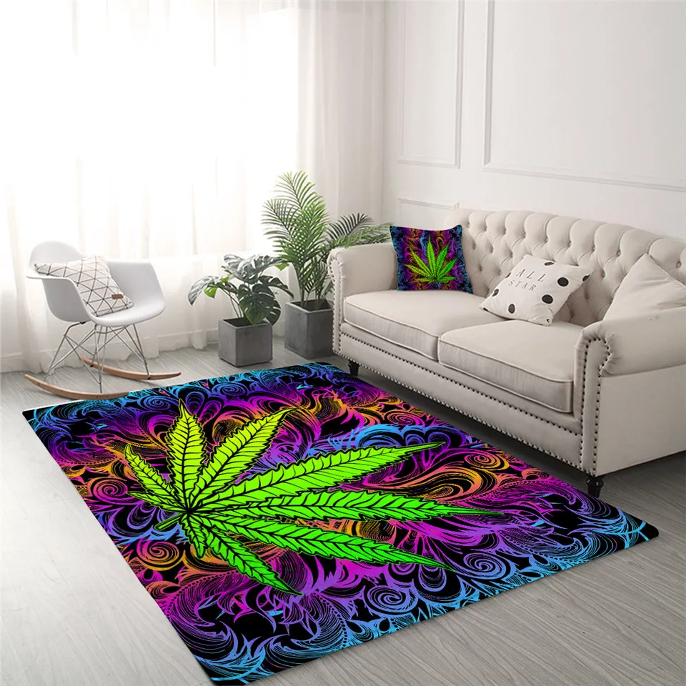 Ковер для гостиной или гостиной, с зелеными листьями, кленовый, большой, психоделический, красочный, Прямая поставка