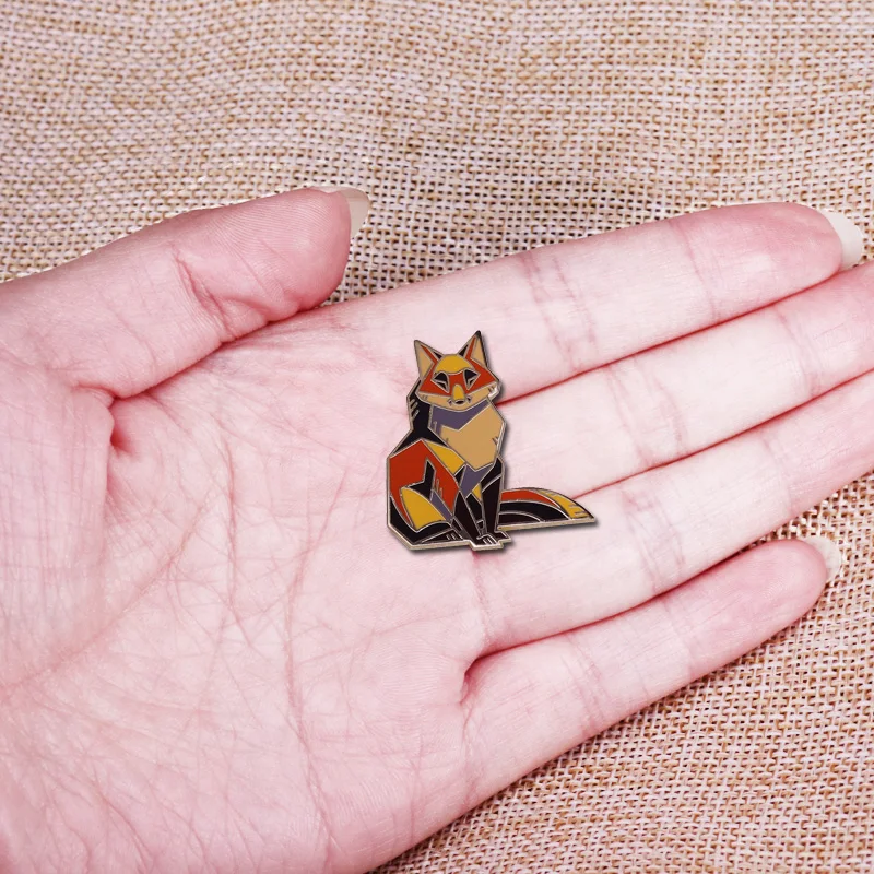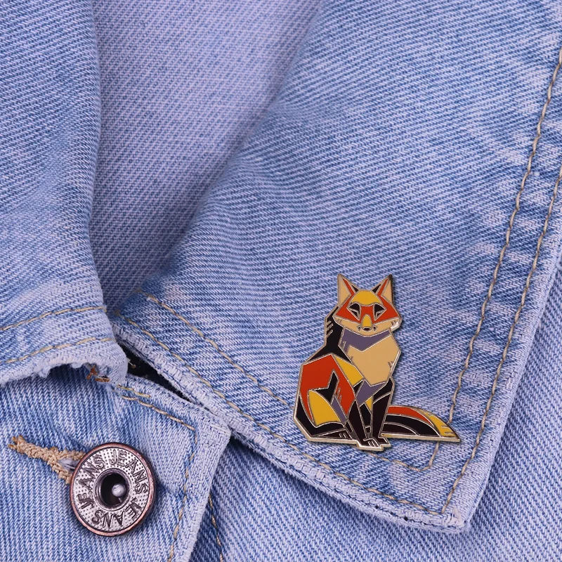 Лиса сидящий бесшумный значок многогранный эффект эмалированная булавка крутая брошь животное уникальный и модный Декор