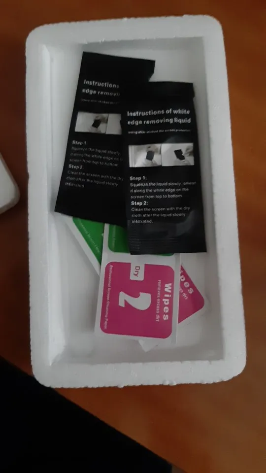 Посылка пришла быстро. В комплекте, как всегда, 2 пары салфеток, кисти с жидкостями и сами стекла. На практике Опробую позднее. Надеюсь, они крепкие) На вид приятные. Вроде, нет зернистости. Но, позже будет видно, когда стекло будет на экране телефона.