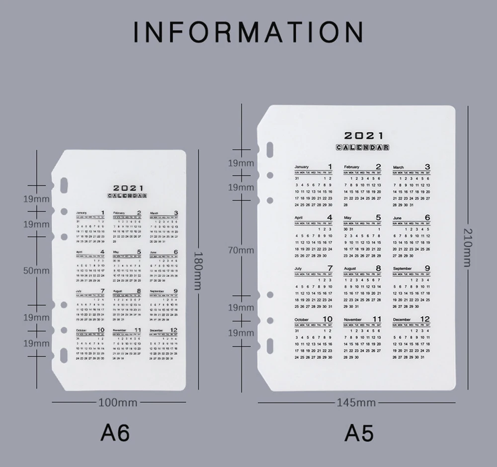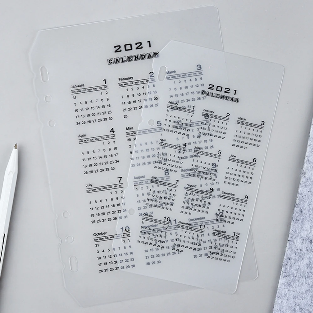 Календарь для блокнота с 6 отверстиями, прозрачный сменный органайзер для указатель страниц А5А6, принадлежности для журналов, 2021