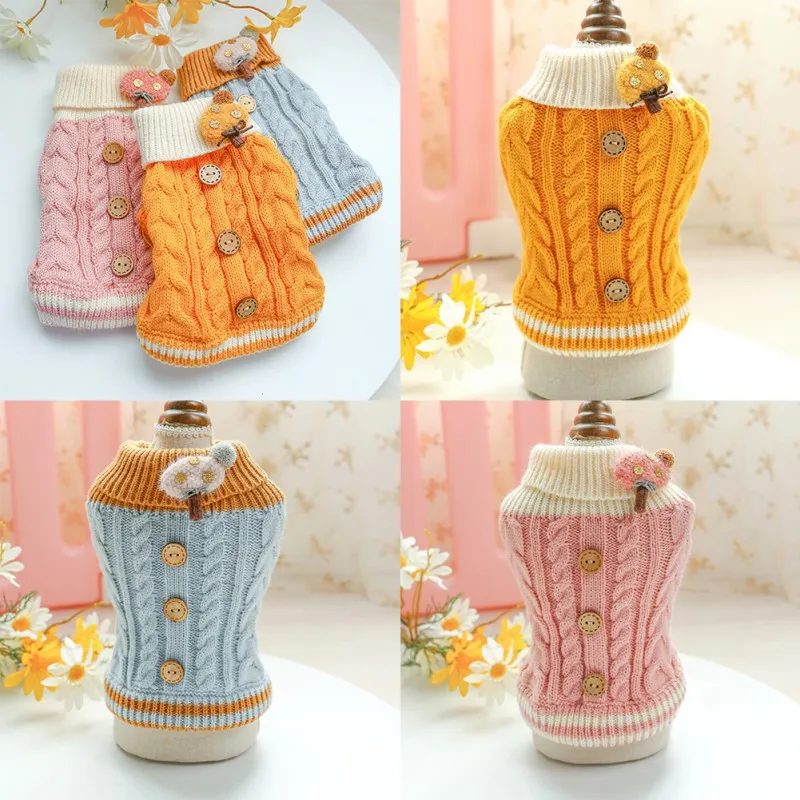 3 цвета, зимний свитер для собак, вязаный свитер для щенков, декоративные пуговицы для собак, одежда для маленьких средних и больших собак