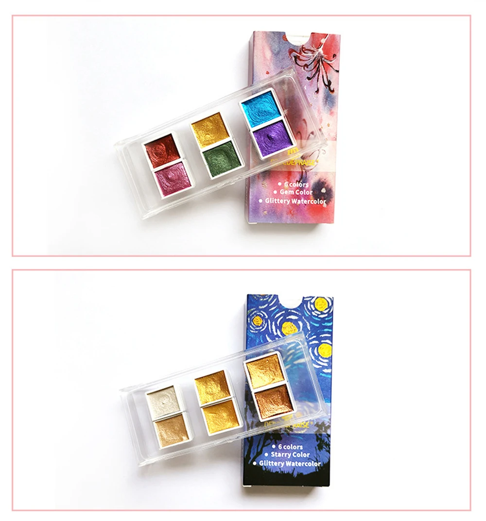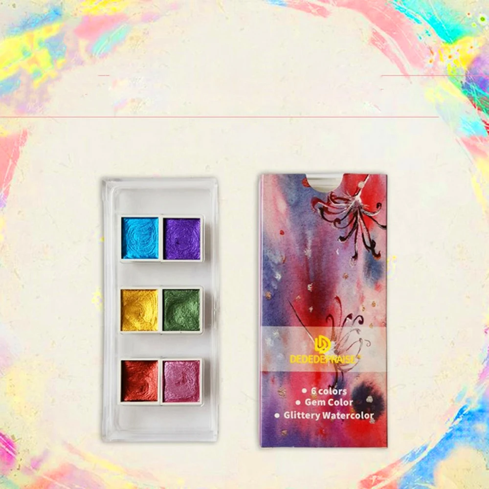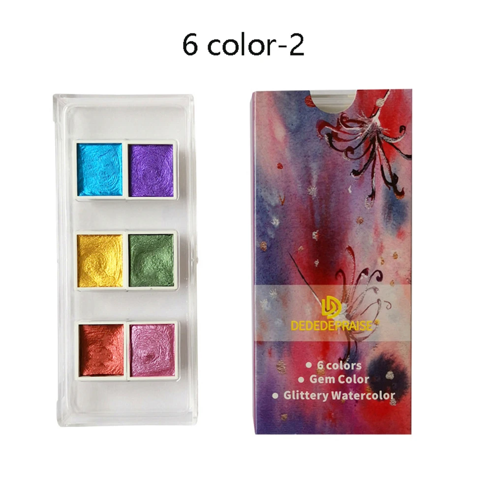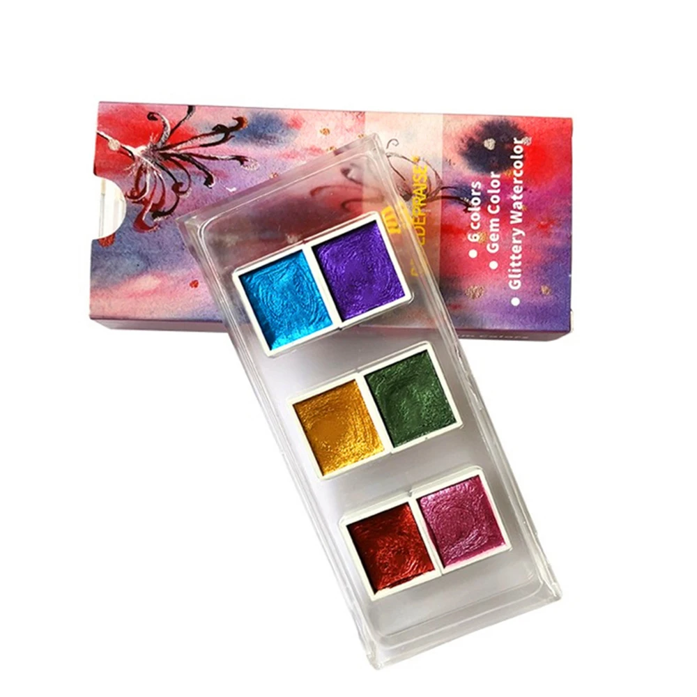 Набор акварельных красок 6 цветов, текстурированный перламутровый пигмент, металлический блеск, портативный товары для рукоделия
