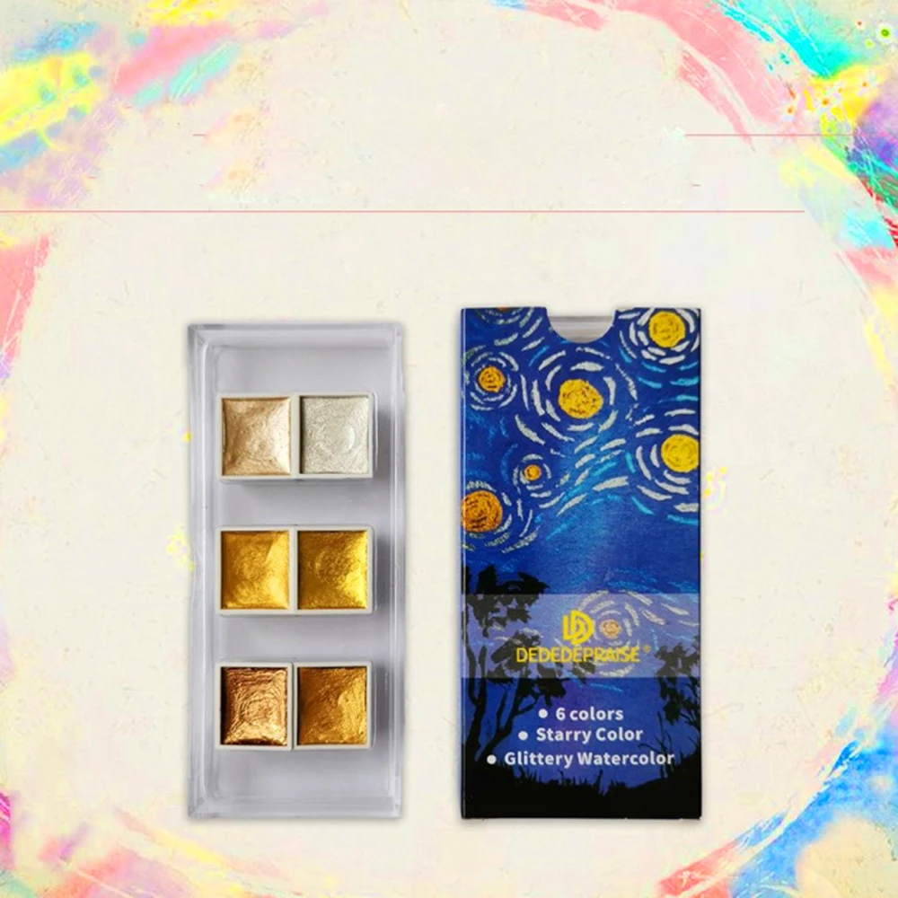 6 цветов металлический акварельные краски в наборе Золотая краска п...