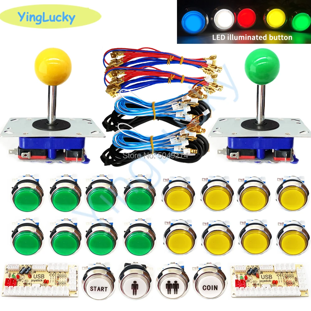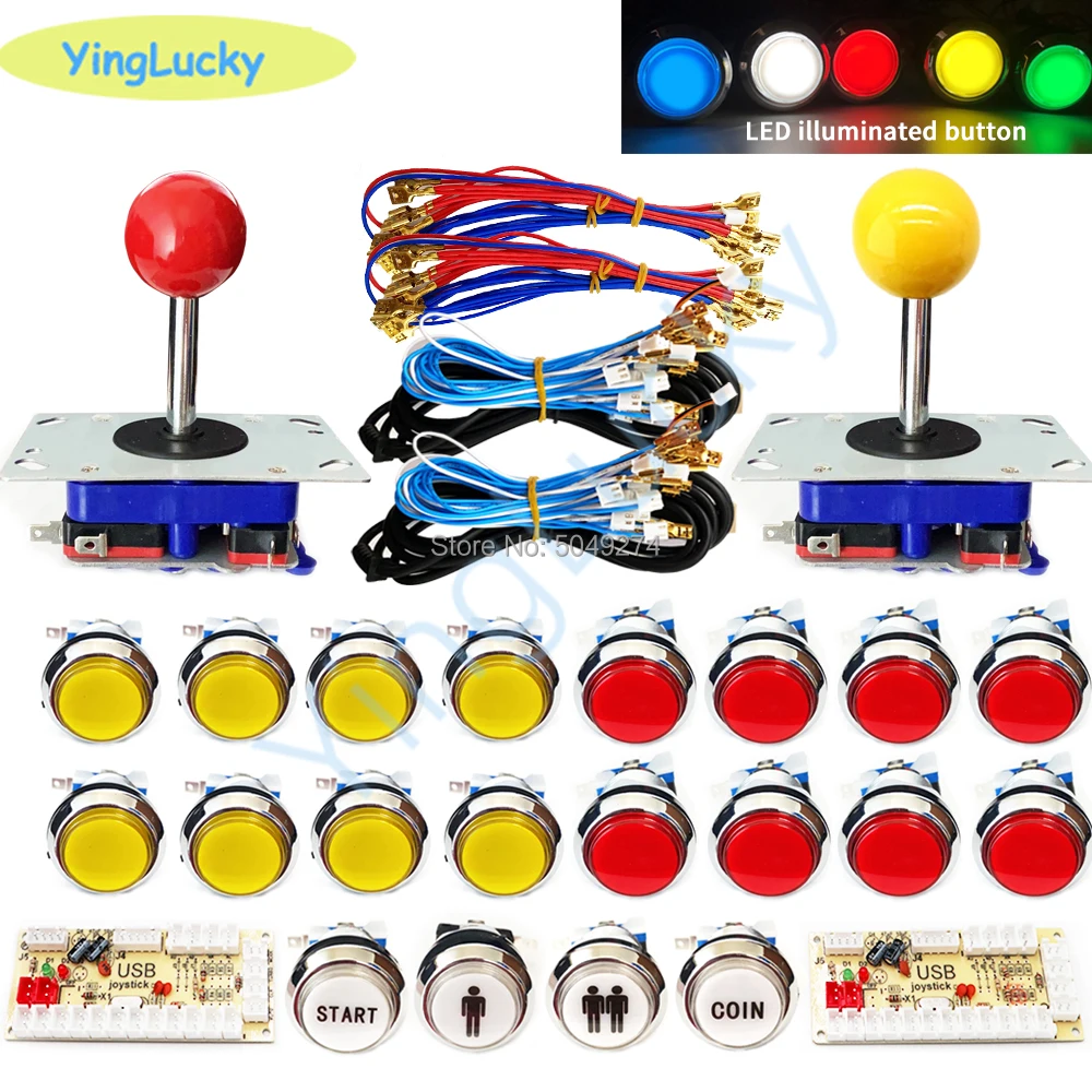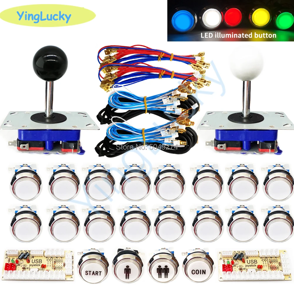 Аркадный шкаф в американском стиле, набор сделай сам для 12 В, светодиодная хромированная кнопка, zippy, джойстик, 2 проигрывателя, кнопка для монет, Нулевая задержка для ПК