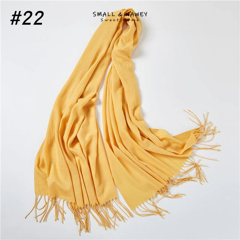 Шарф женский, тонкий, с кисточками, весна-зима, однотонные кашемиро...