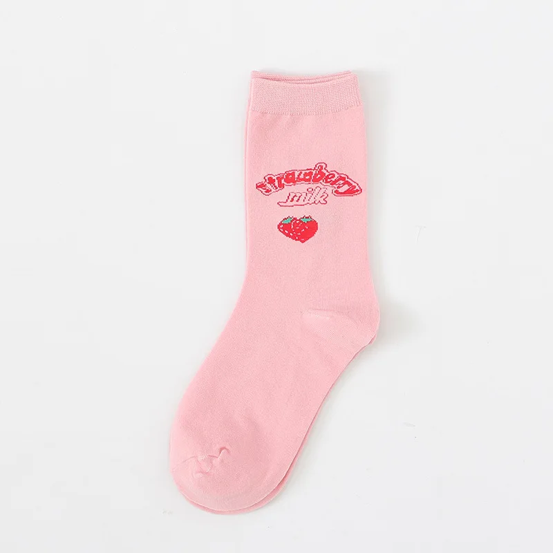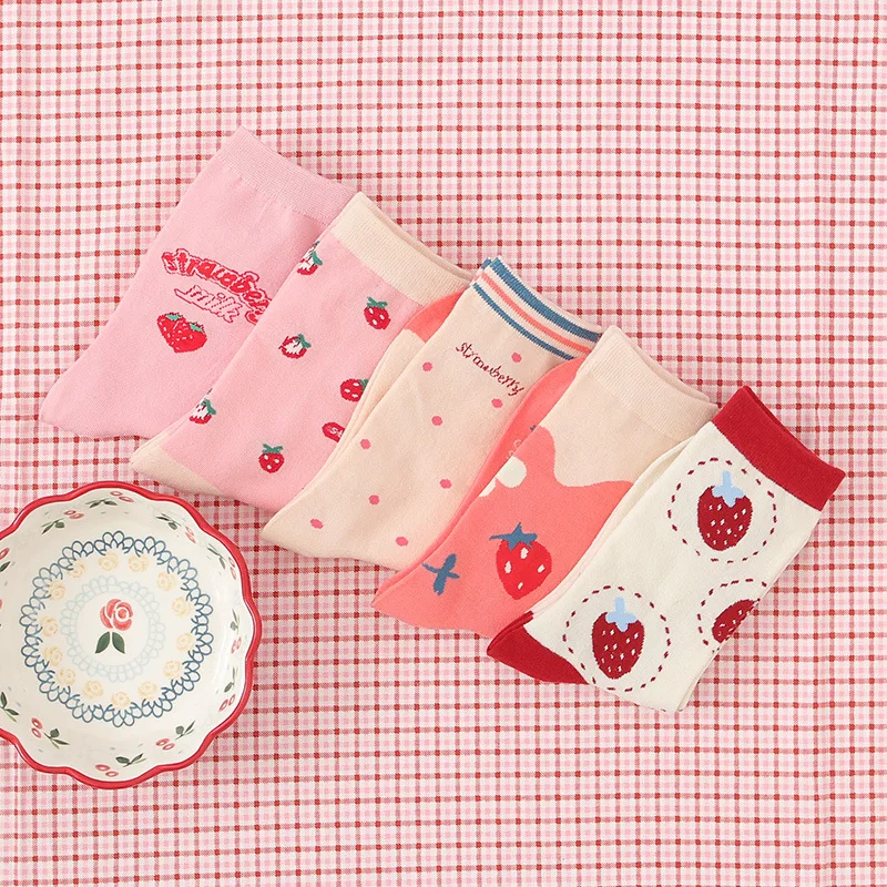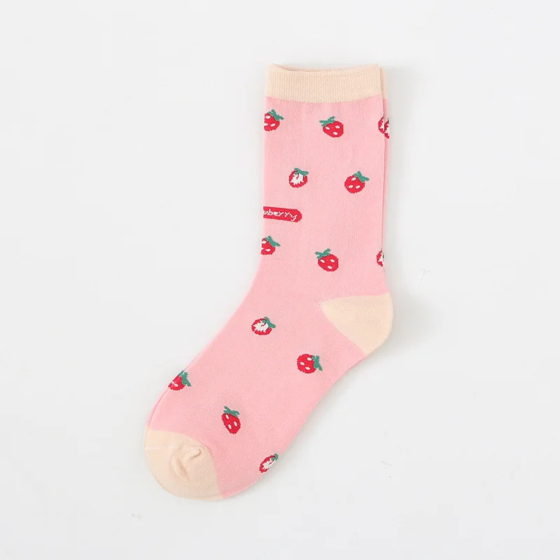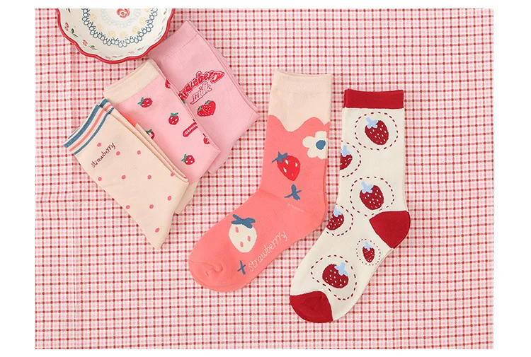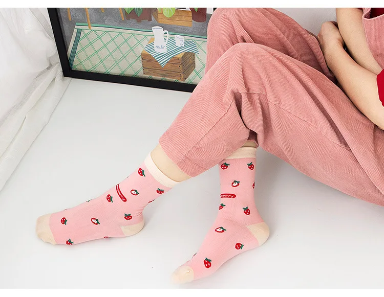 Розовые носки с изображением клубники для женщин kawaii calcetines de la mujer skarpetki meias meia femme chaussettes cute cartoon chaussette