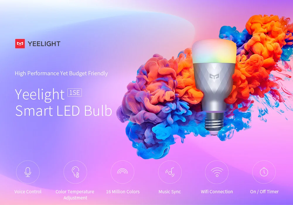 Умная светодиодный ная лампа Yeelight 1SE поддерживает Голосовое управление, что избавляет вас от проблем с включением/выключением света. Поддержка Google Assistant, SmartThings, Amazon Alexa.