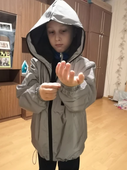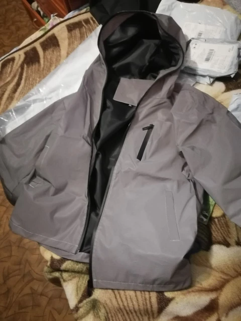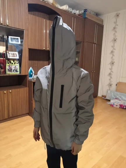 Товар как на картинке. Свет отражает. Сидит на ОГ 110 сидит свободно, достаточно, чтобы одевать свитер, но вероятно недостаточно для надевания на другую более теплую куртку, видимо максимум на теплый жилет. Рукава на рост 170 см на месте, не длинные и не короткие. В целом, оказалось, что очень хороший товар. Швы нормальные внутри. Да, это ветровка без подклада - я такую и хотела. Спасибо продавцу, все отправил в срок.