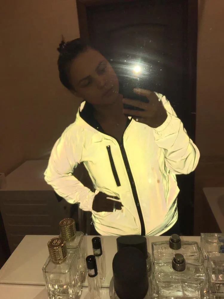 Куртка огонь!! Очень сильно отражает свет!! На 50 размер в груди села нормально, а вот по бедрам мала, надо было брать на размер больше.