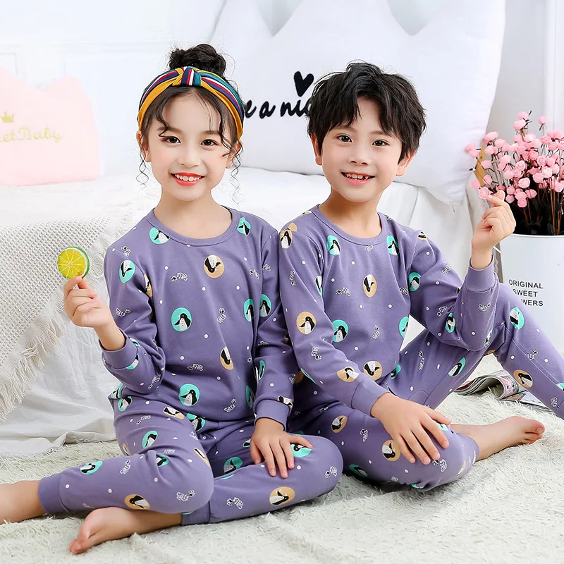 Детские пижамы, комплект детской одежды, детская одежда для сна с мультяшным единорогом, осенняя хлопковая одежда для сна для мальчиков и девочек, пижамный комплект с животными
