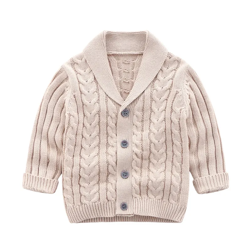Вязаный кардиган для мальчиков, однотонный, с длинным рукавом, весн...