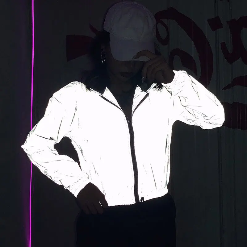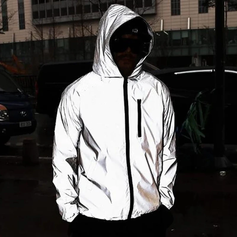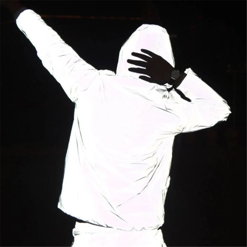 Мужская Светоотражающая ветровка, светящаяся, водонепроницаемая, в стиле хип-хоп, уличная, свободная, размера плюс