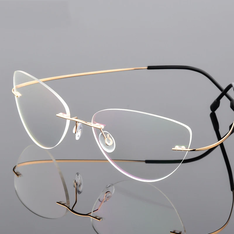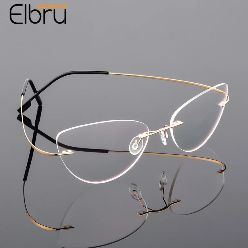 Elbru модная оправа для очков в стиле кошачьи глаза металлическая титановая оправа без оправы Сверхлегкая эластичная оправа для очков для близорукости унисекс