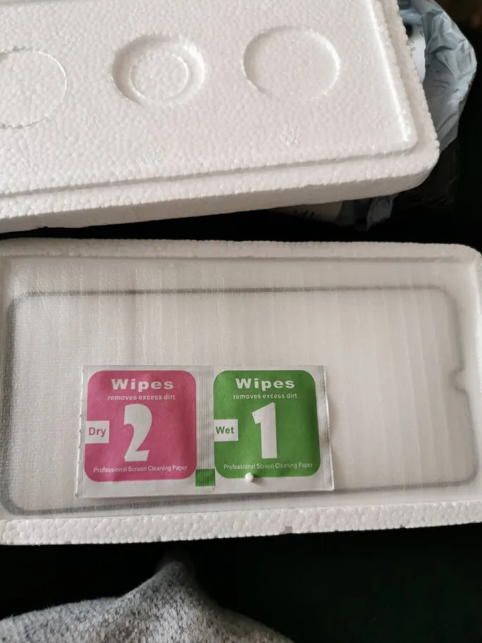 Хорошее стекло. В комплекте две салфетки. Упаковано в пенопласт, так что повреждения наверно исключены. Дошло примерно за месяц.