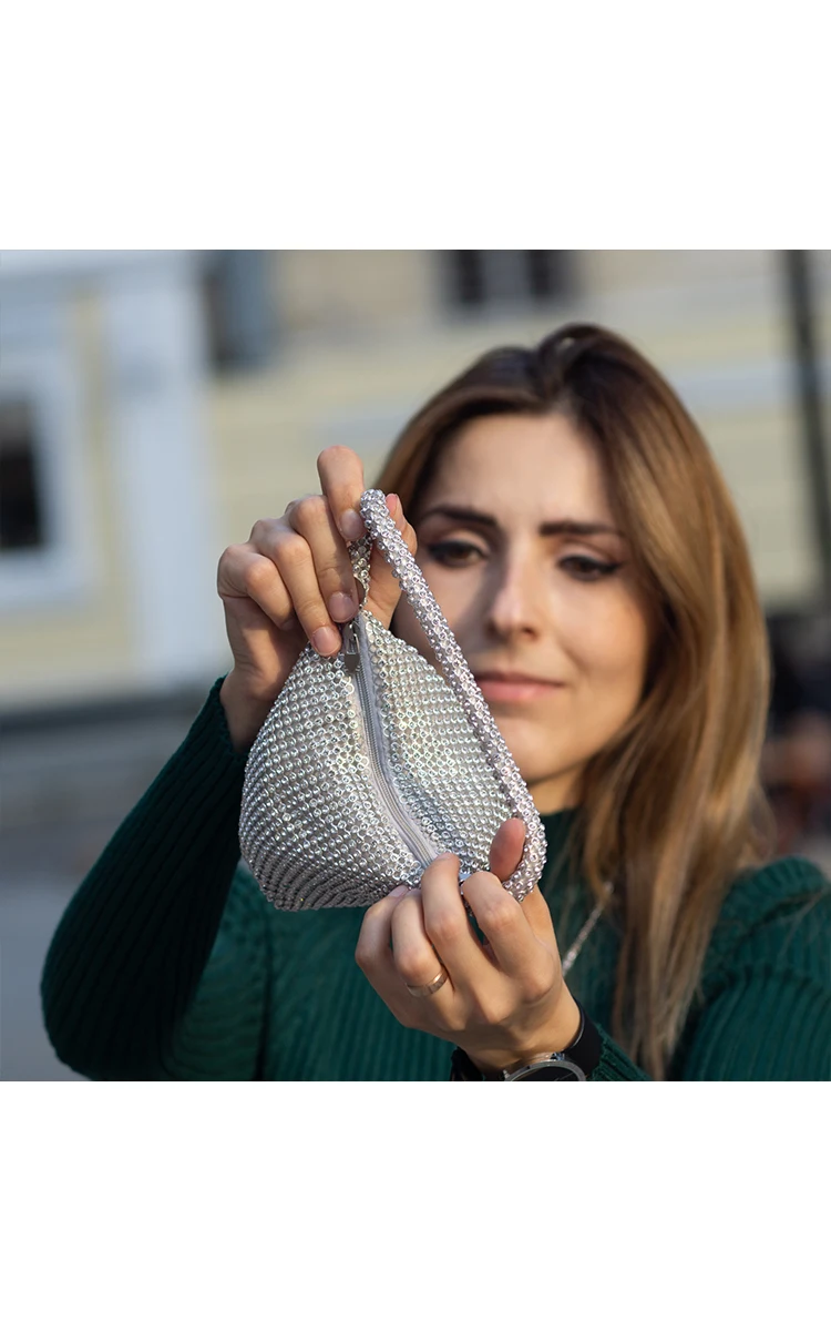 Маленькие мягкие женские вечерние сумки с молнией и стразами, вечер...