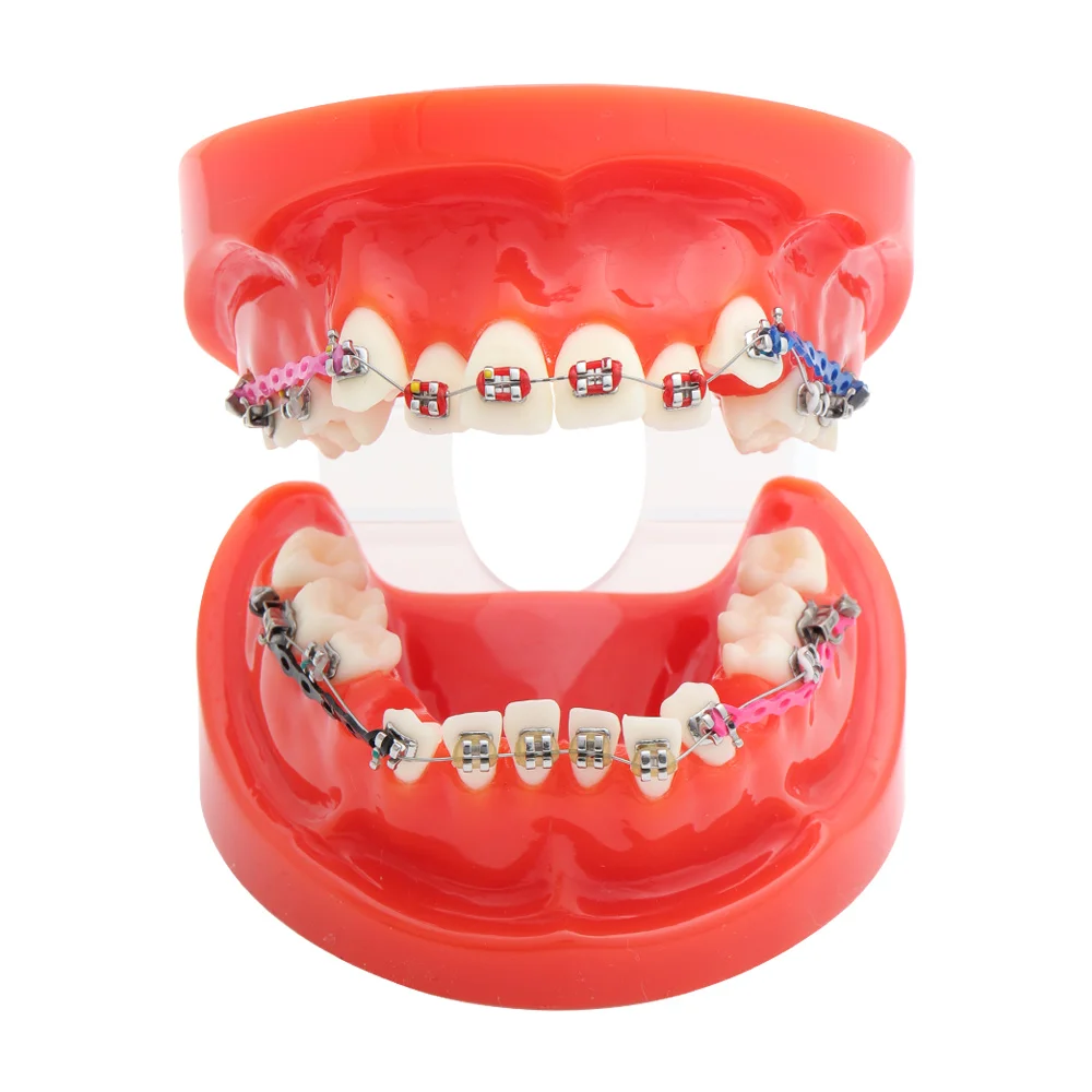 Стоматологическая стандартная Ортодонтическая модель зубов с кронштейнами, буккальными трубками и лигатурной проволокой, Ортодонтическая обработка, красный
