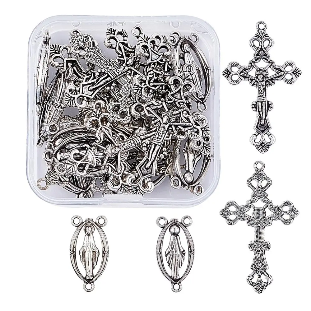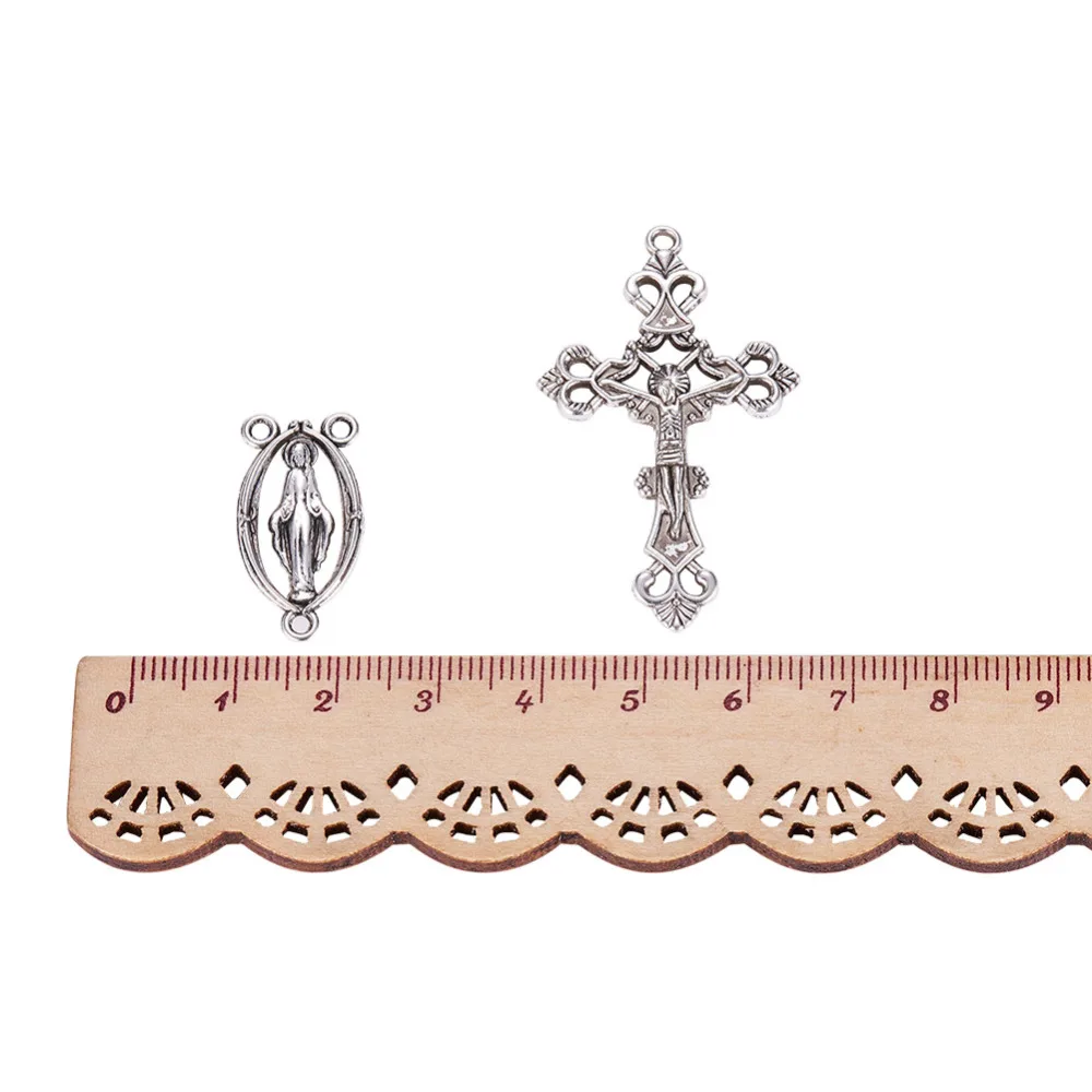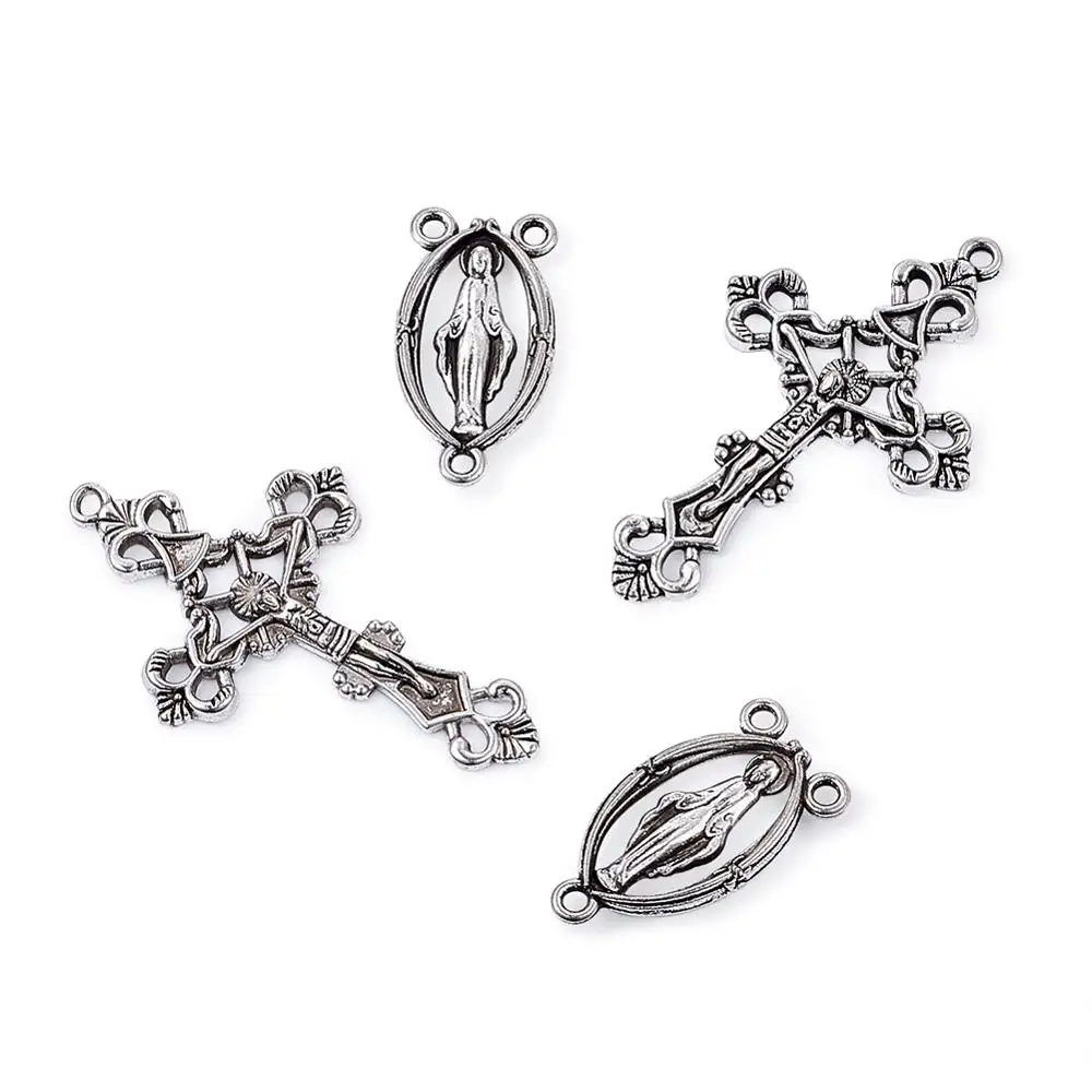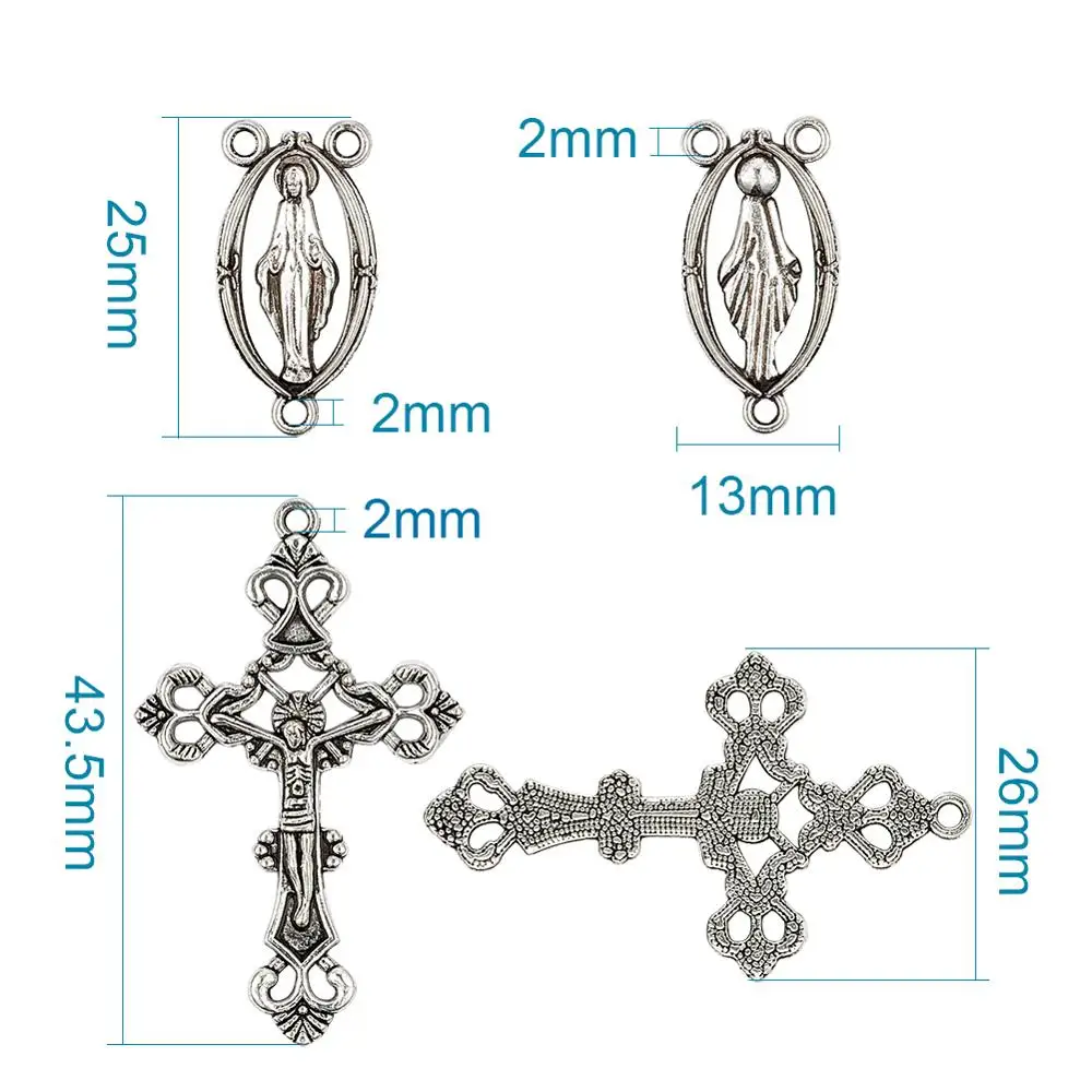10 наборов Розарий крест и центральный комплект для изготовления четки из бусин, ожерелье, сплав Распятие крест подвески и девственные звенья без свинца