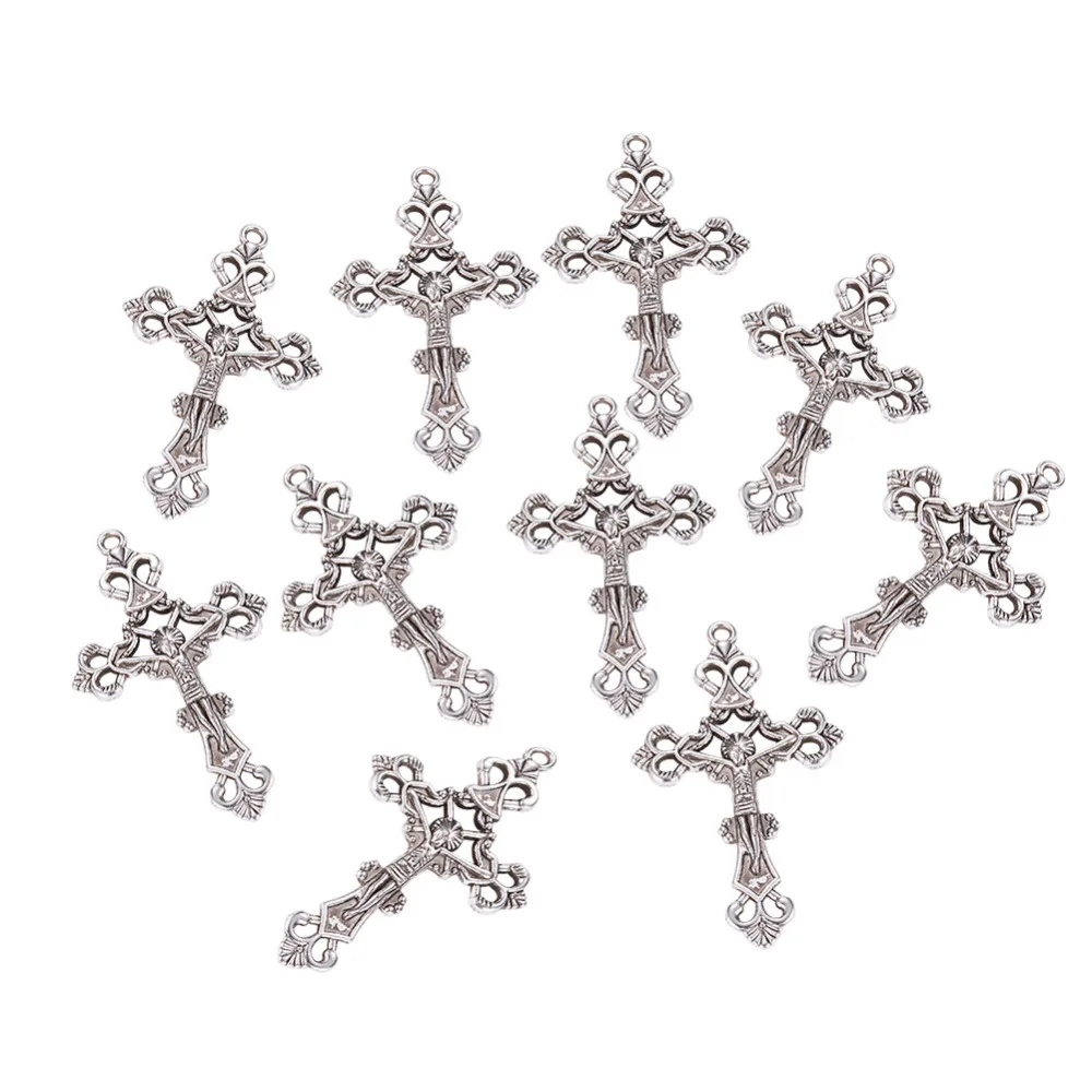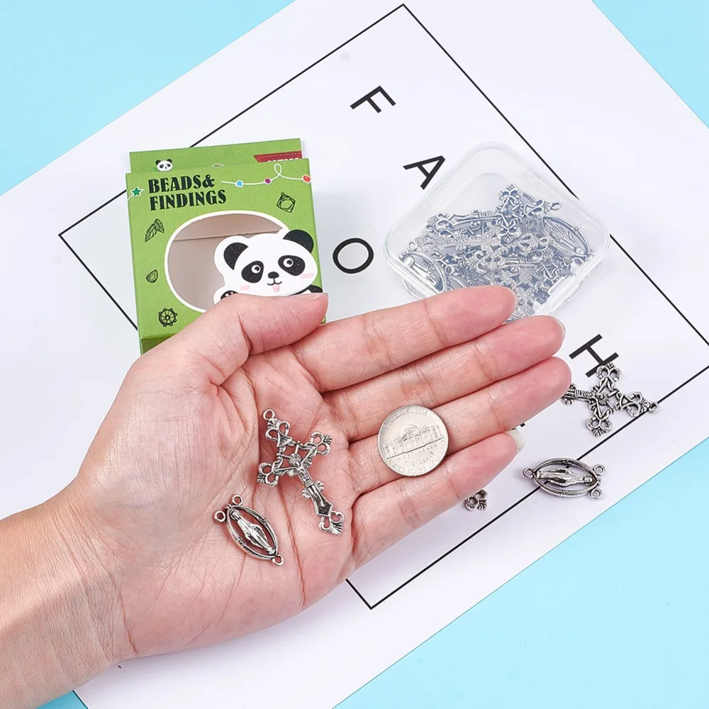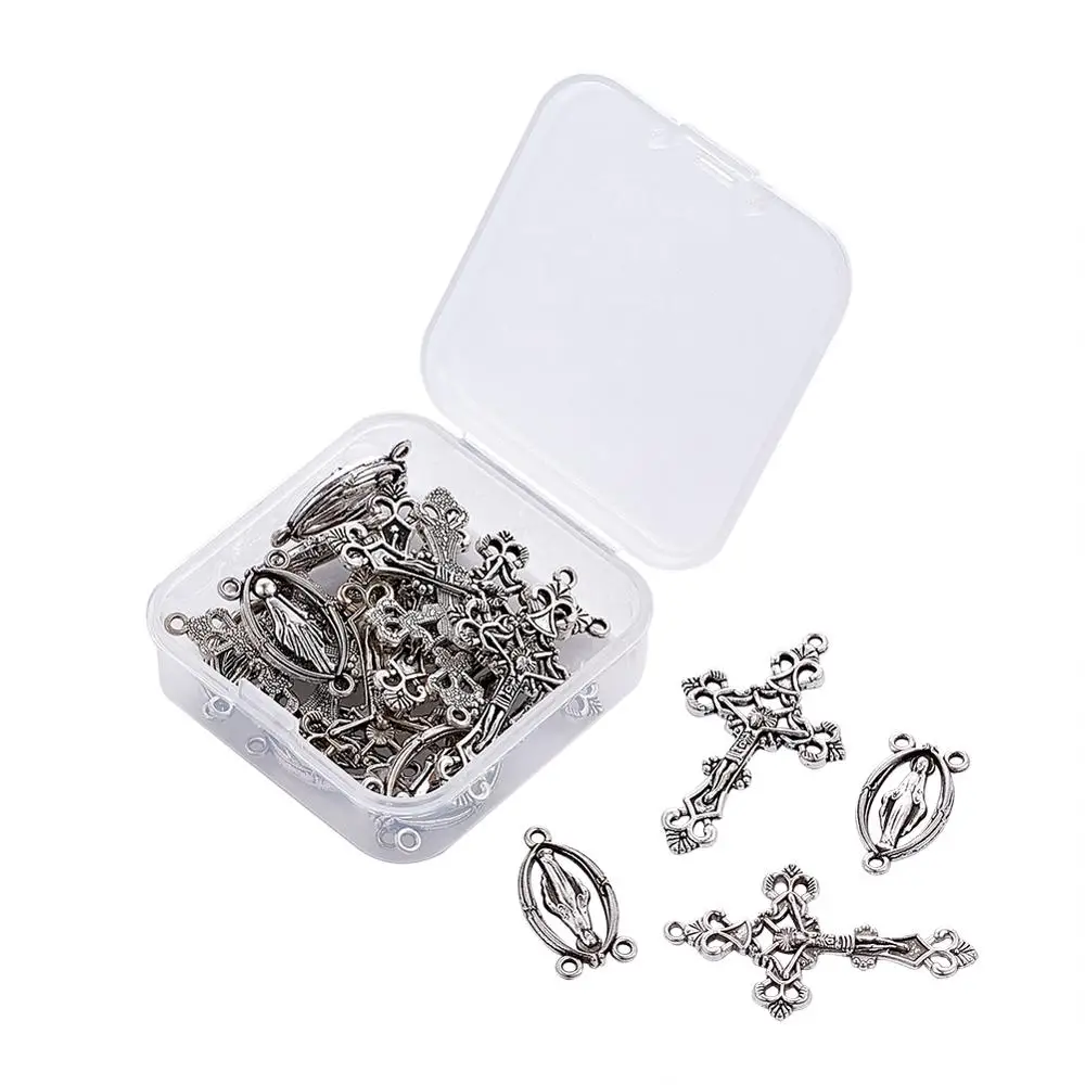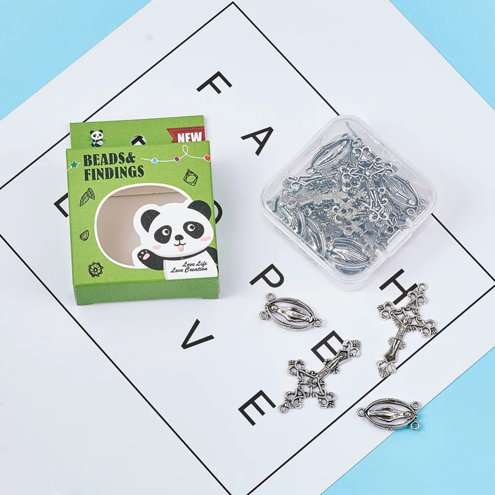 10 наборов Розарий крест и центральный комплект для изготовления четки из бусин, ожерелье, сплав Распятие крест подвески и девственные звенья без свинца